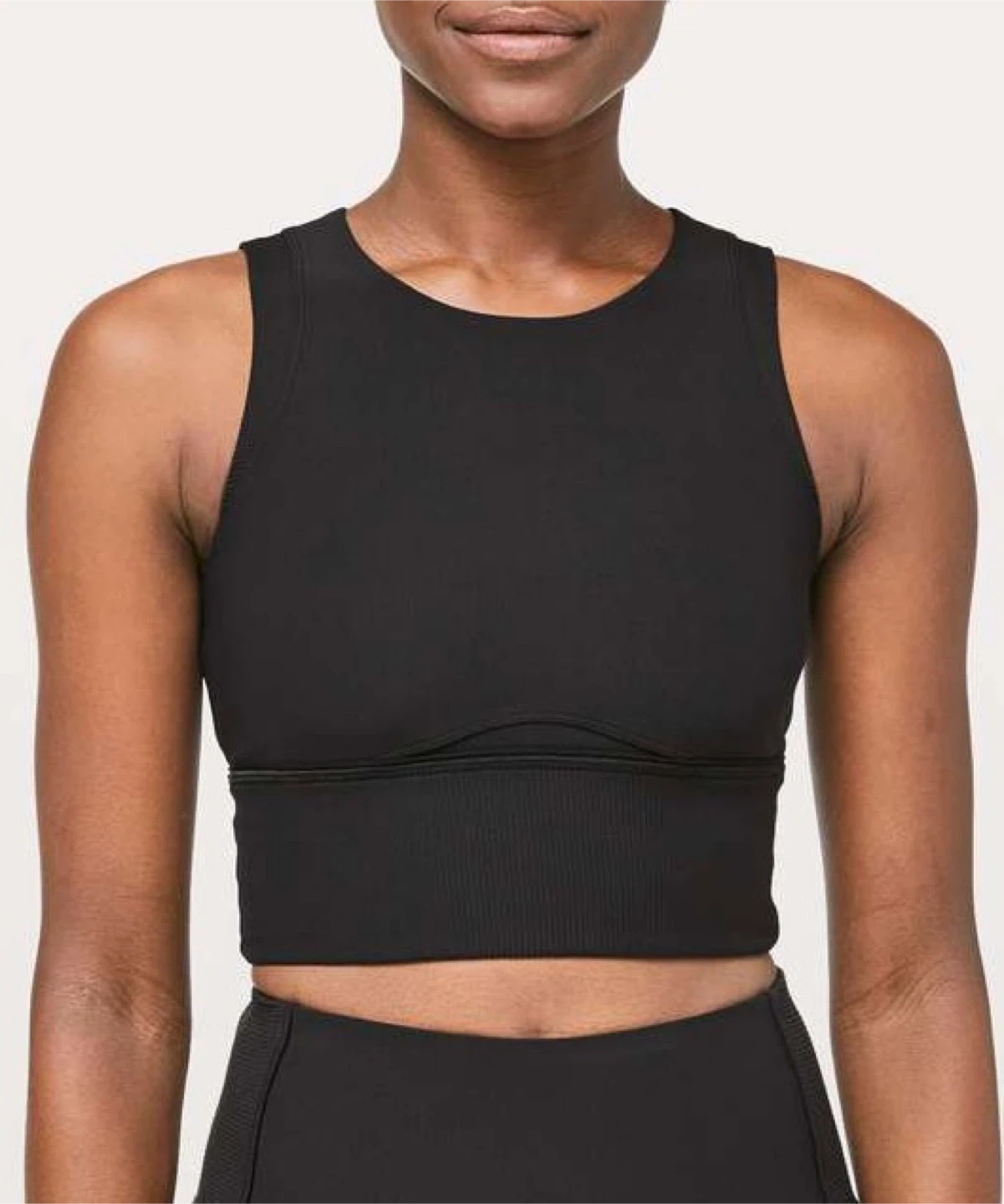 Lululemon - Kick Swerve Bra Long line bra in black with ribbed textures, interesting style lines, and subtle tonal branding. Designed for low-impact workouts. Made in sweat-wicking, four-way stretch, ribbed Luxtreme™ fabric. Has pockets for optional, removable bra cups (cups not included). Size: 4 (XS) *CC label removed but heat transfer size label is in bra cup pocket Condition: New without tags (all tags and labels removed but never worn) Measurements (flat): Chest width: 13” Length from shoulder to hem: 15 1/4” Bottom hem width: 10 3/4” Fabric Content: Bra: 69% Nylon, 31% Lycra® elastane Middle layer: 89% Nylon, 11% Elastane Bra lining: 56% Polyester, 33% Coolmax® polyester, 11% Lycra® elastane Trim: 77% Nylon, 23% Lycra® elastane Contrast: 72% Nylon, 28% Lycra® elastane *Porch or door pick-up near Taunton/Audley in Ajax, ON (Audley Recreation Centre area)