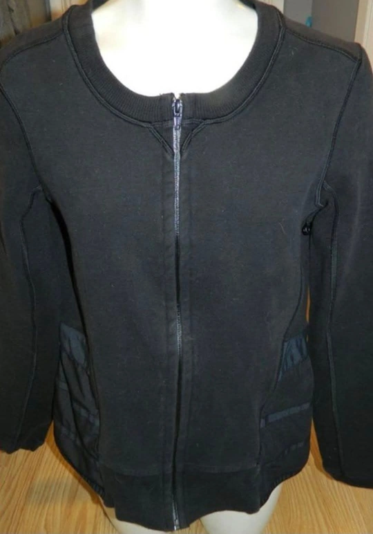 Selling a Lululemon black jacket in size 6. It's in great condition and ready for a new home! The jacket features a full zipper and unique detailing on the back. Perfect for layering or wearing on its own size 6 scuba material