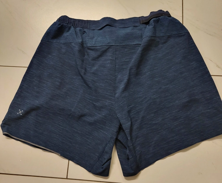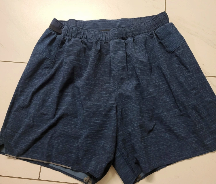 201Lululemon Run On Shorts, size Medium, in a blue colour. Elastic waistband with drawcord. Two side pockets. The shorts are in excellent condition.