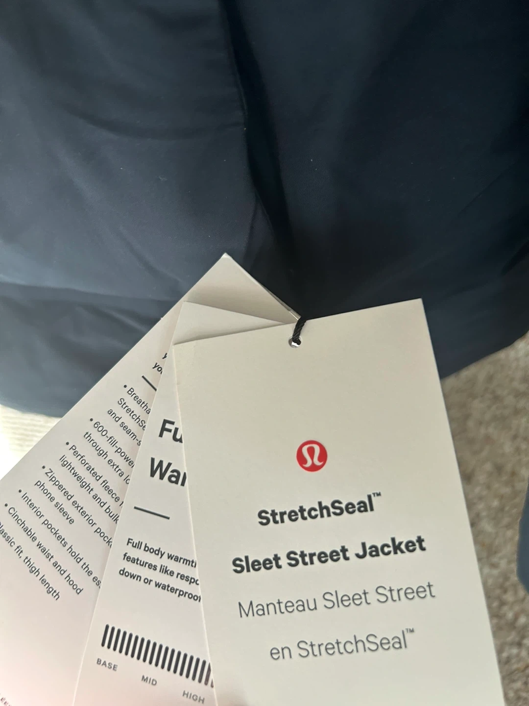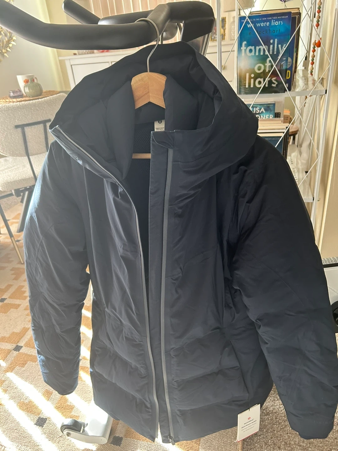 60Lululemon Sleet Street Jacket in size 10! This jacket features StretchSeal™ fabric, perfect for staying warm and dry. It's a full body warmth jacket with features like a responsible down or waterproof exterior. Also has interior pockets and exterior pockets Pick up only please