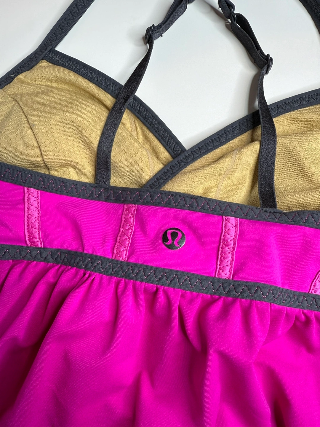 Cute vintage Lululemon tank top in great condition! Fits like a small. The colour is a vibrant pink with dark grey trim. Still in great condition!