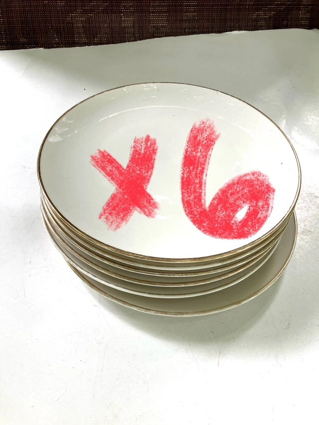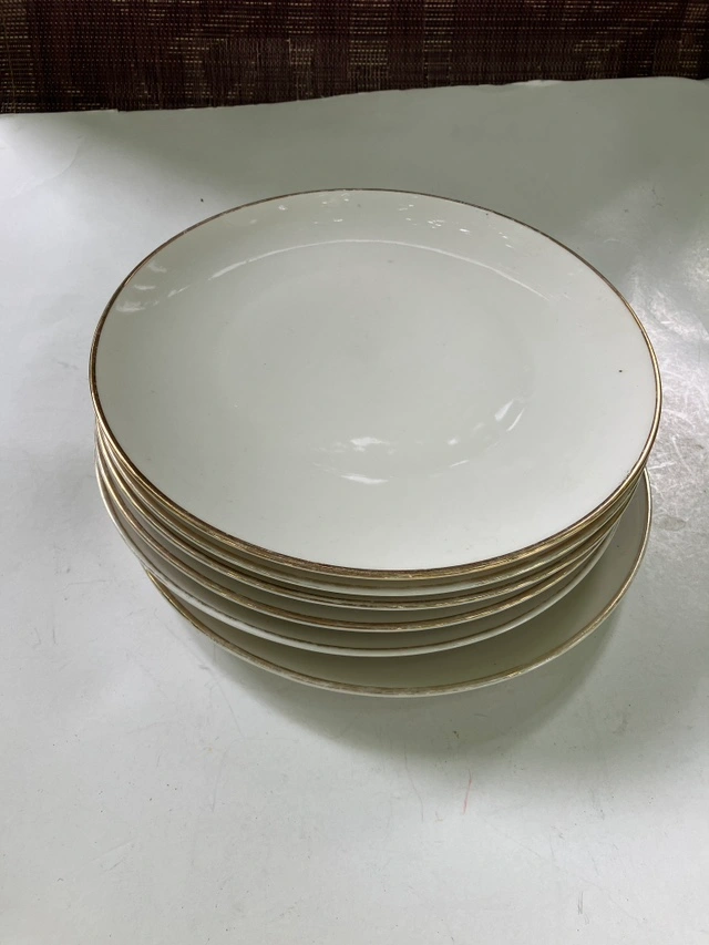 Luncheon Plates Ivory w/ Gold Rim Set of 6