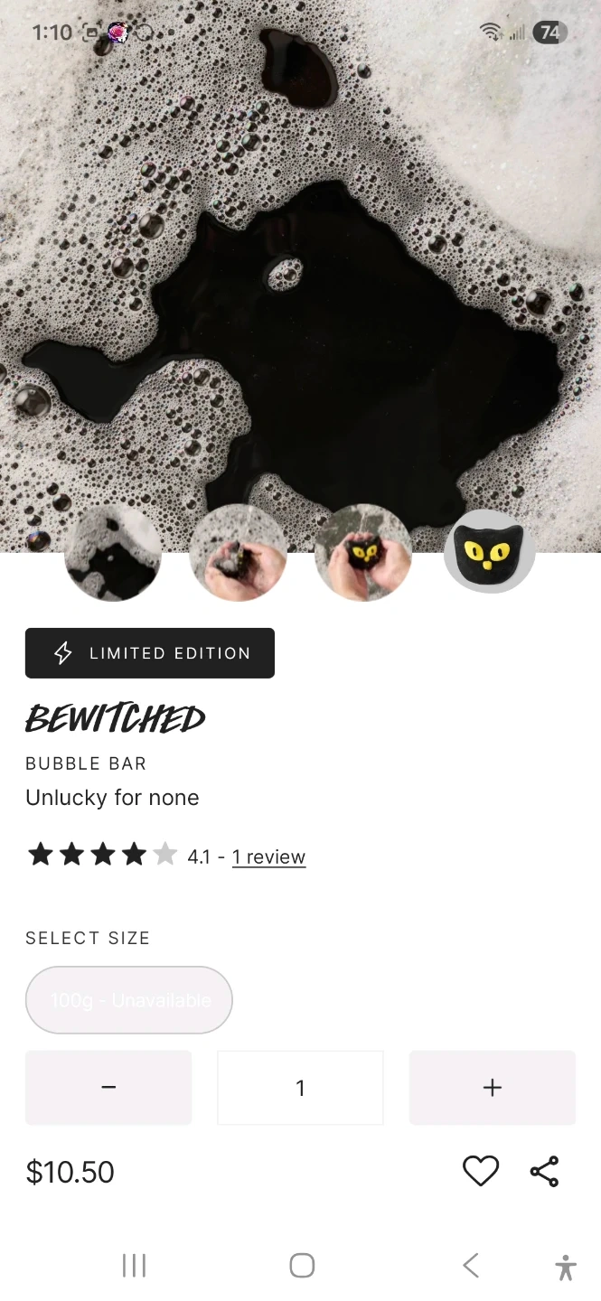 84I'm selling a Lush Bewitched Bubble Bar! It's a limited edition item. It is unlucky for none