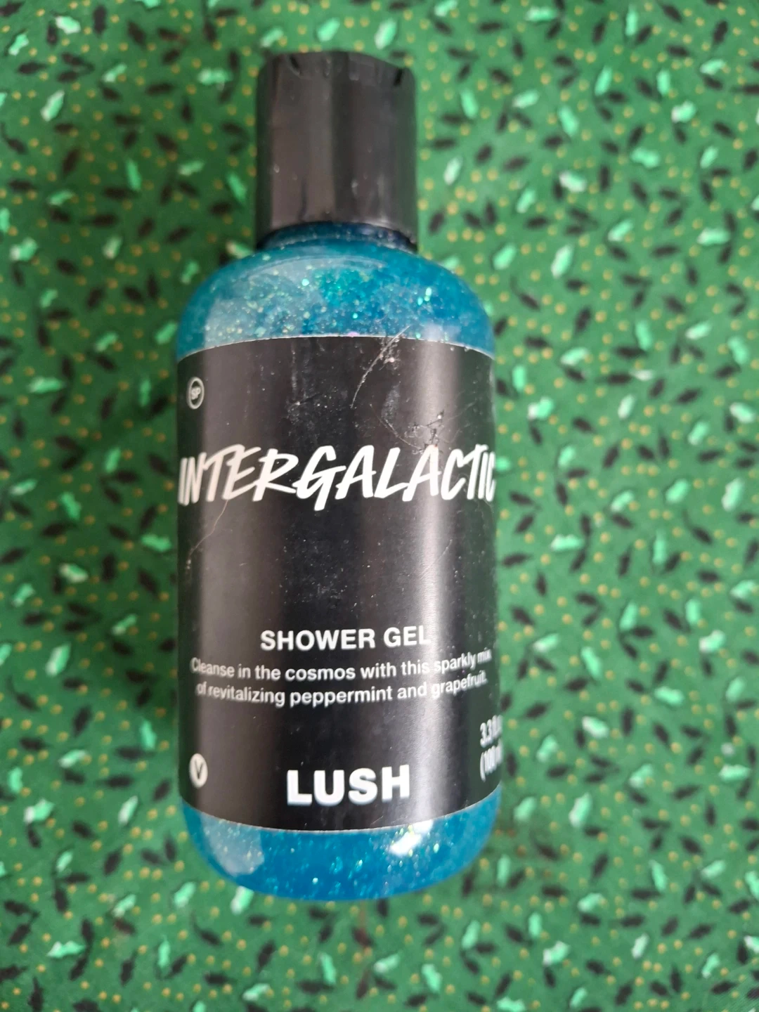 Selling a bottle of Lush Intergalactic shower gel! This shower gel cleanses in the cosmos with its sparkly mix of revitalizing peppermint and grapefruit. It's the 100ml size.