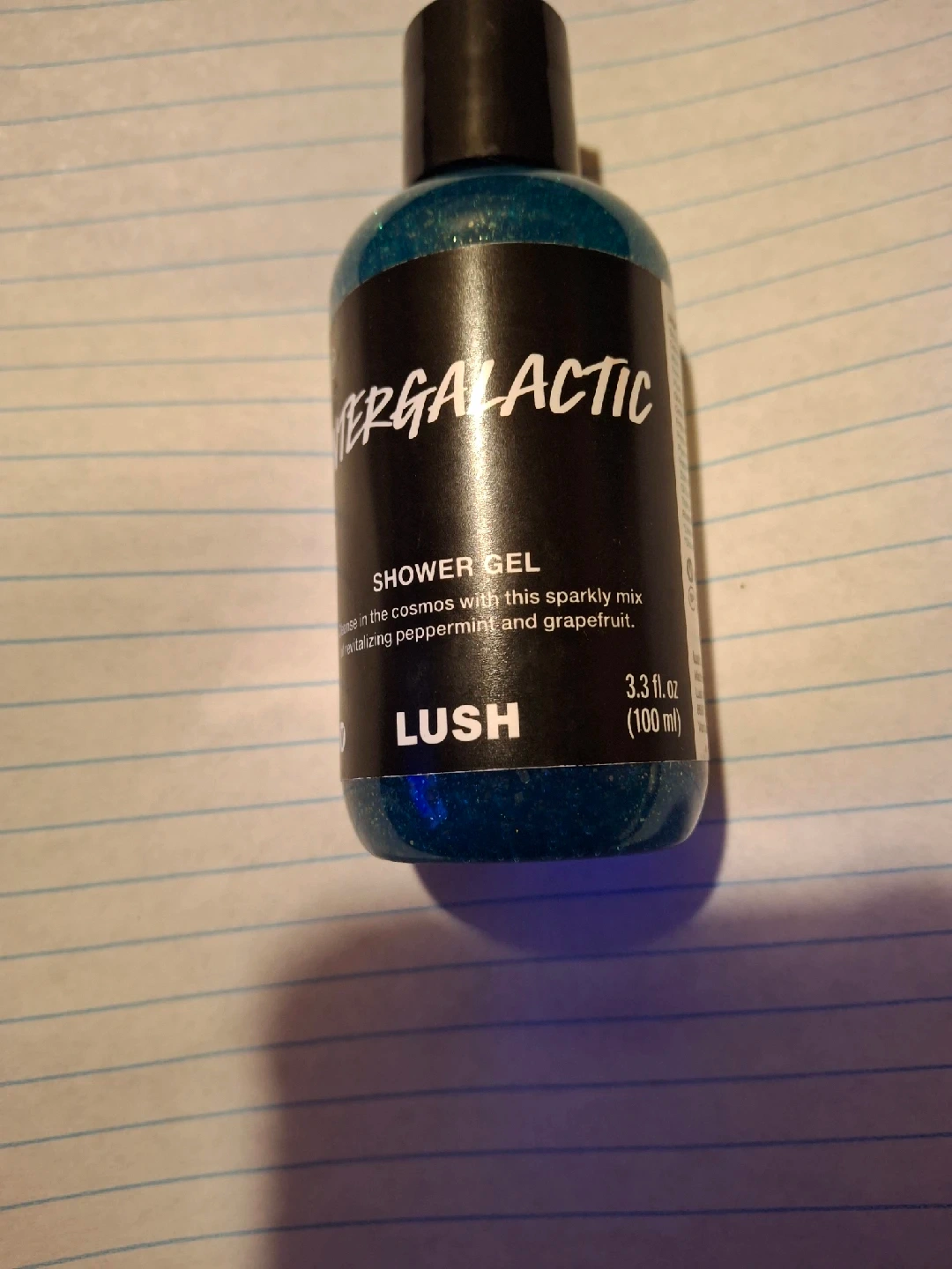 84Selling a bottle of Lush Intergalactic shower gel! It's a sparkly mix with peppermint and grapefruit, and comes in a 100ml (3.3 fl. oz) bottle