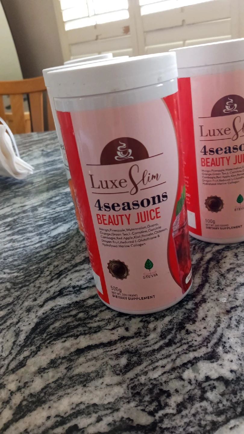 106I have a Luxe Slim 4seasons Beauty Juice for sale! This dietary supplement contains mango, pineapple, watermelon, guava, and more. It helps in fat loss, improves metabolism, and appetite control. Expiry date is 2027 February 15..Also benefits your skin with collagen and peptides