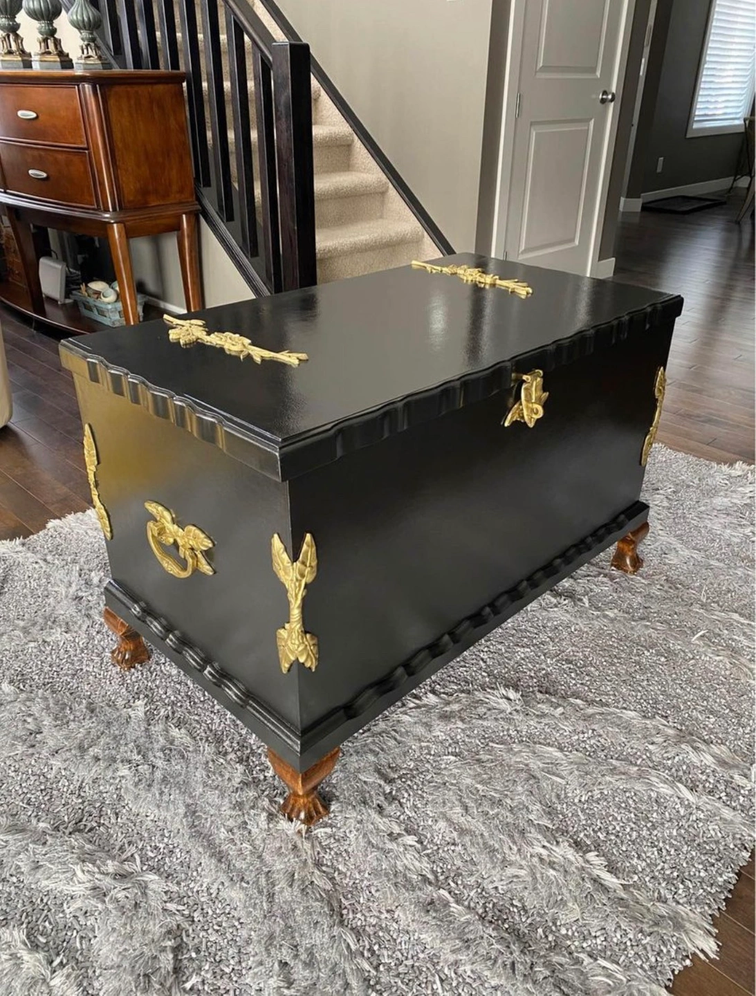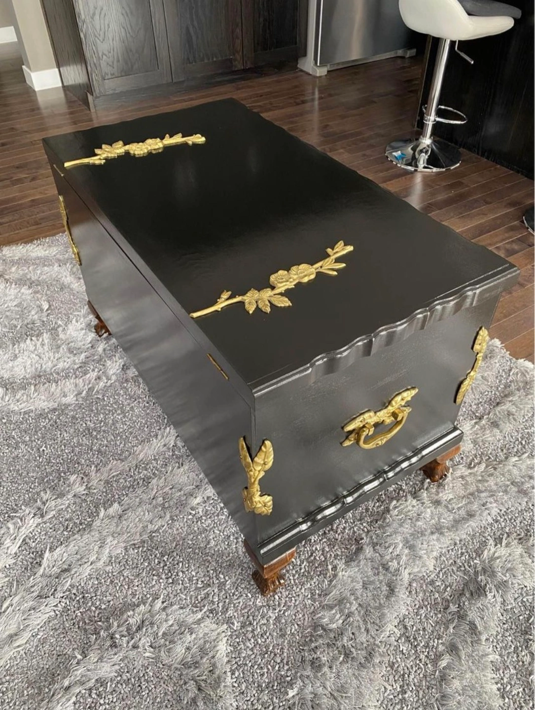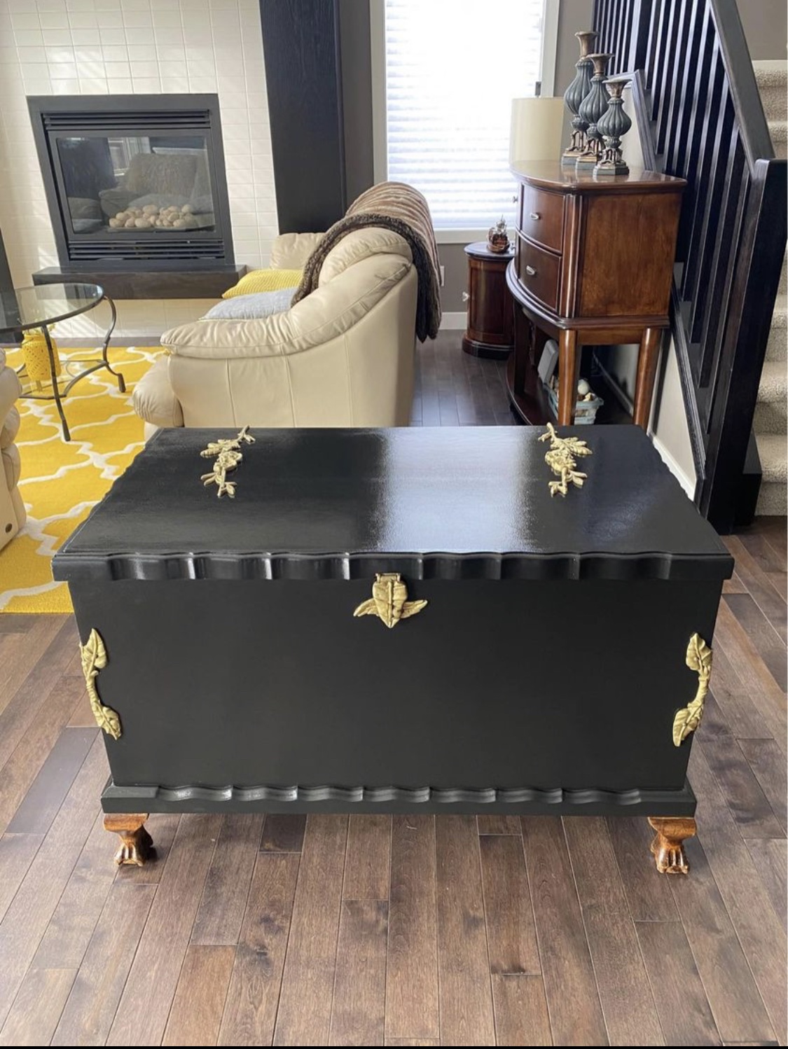 15๐ Clean and fully restored like a New for your luxury home ๐ฅCedar lined ๐ one extra drawer in side ๐ก Applied a superior coating to get the anti-scratch ๐จ low gloss black colour ๐ Measured dimensions are provided in โฆ Length 40 inches, width 22 inches and height 26 inches ๐ก Well taken care of in a non-smoking and pet-free home. ๐บ Pick up in Chaparral valley SE. ๐ฐ Cash only (not acceptable E-transfer) ๐ Pre-deposit for holding ๐ Delivery Come and pre-pay for delivering. Delivery can be arranged but will be subjected to additional charges $50 in Calgary ๐ Please see my other items on my listings for more your choices. ๐ โsnowfreethereโ on Instagram