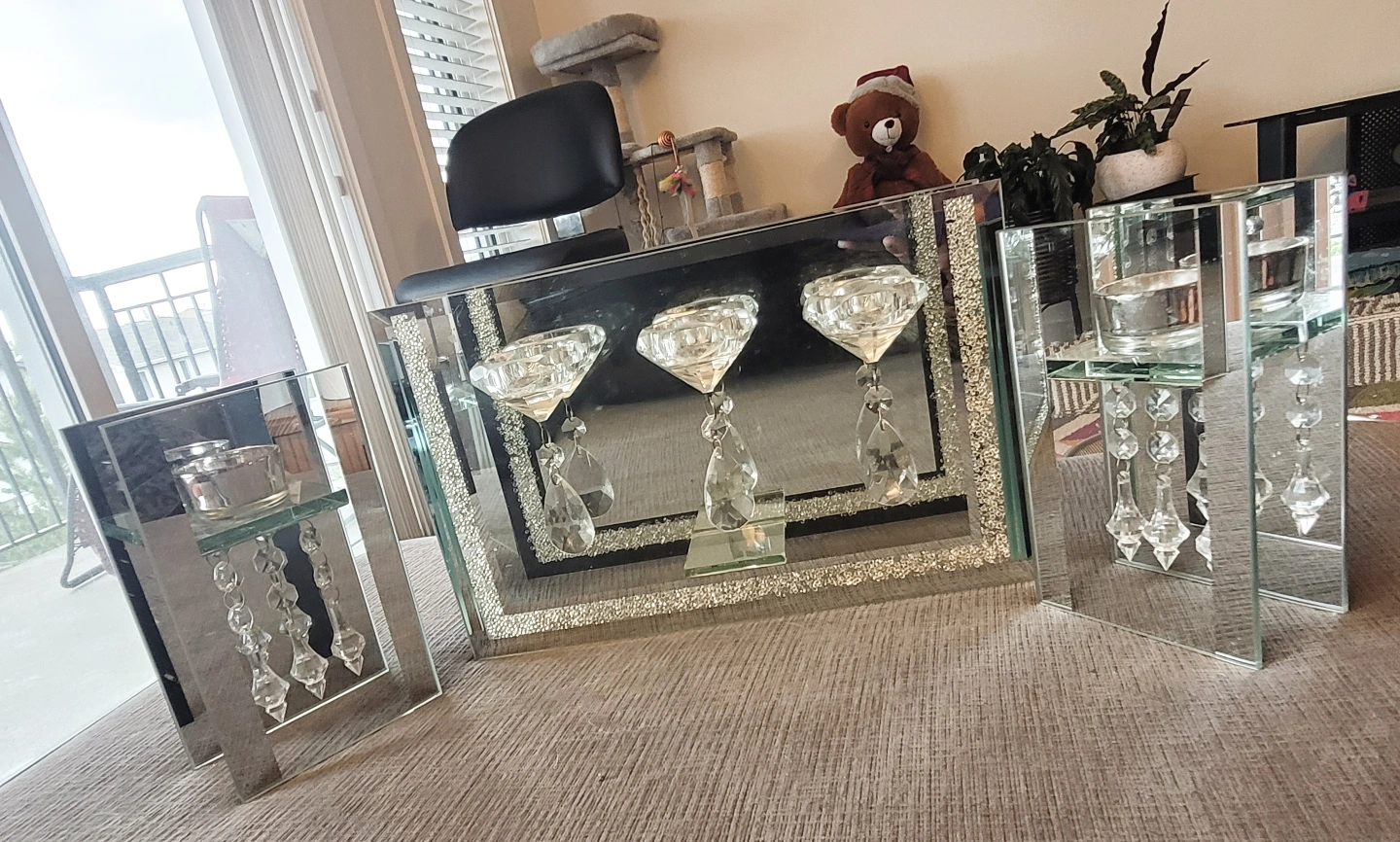 Luxury Crushed Crystal tealight Candle Holders & Mirror