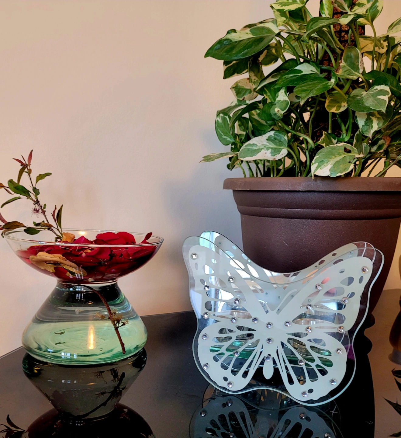 27Selling my collection of Beautiful luxury Set of 3 Tea lights crushed crystal with mirror glass L 25cm X H 18cm X T 6cm Butterfly with Crystals 2 Candles holder All for $80
