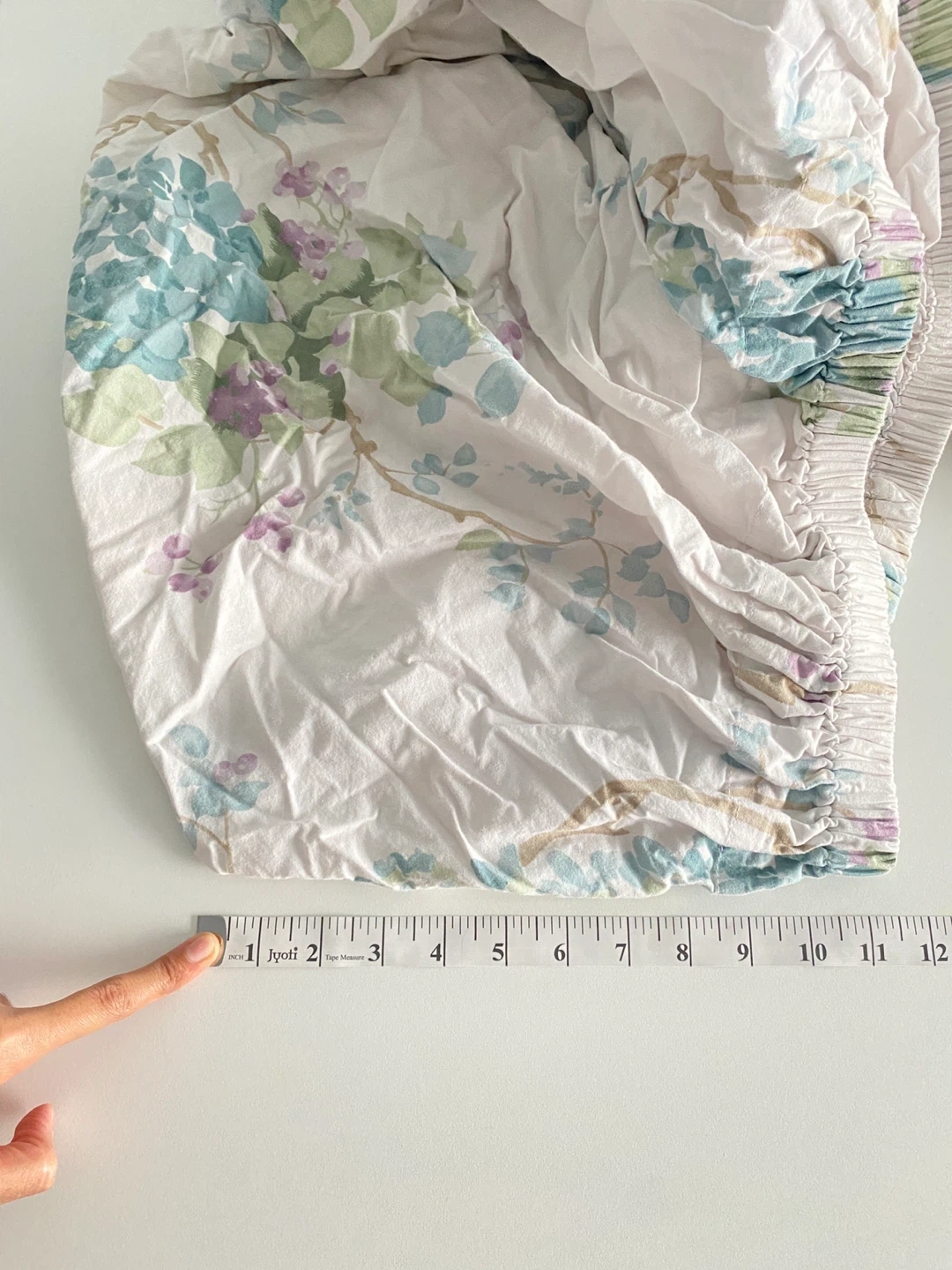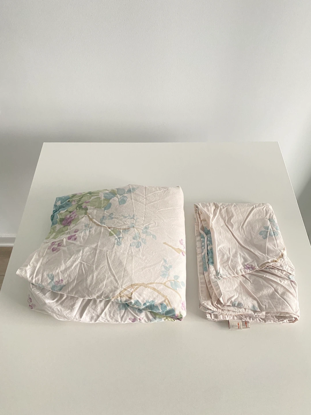 219Selling a gorgeous luxury high thread count queen bedsheet set from Spread Spain. It has wisteria duck-egg/pistachio print on it, you can bring out the different colours from it in your accent pillows to create a cohesive high end look. It has thick elastic woven tightly for a snug fit so it won’t come loose or snap out of place accidentally. Great for thick mattresses - see pic 2 for measurements. Has two pillowcase covers. 100% Thick Cotton with 1200 thread count which makes it an ideal choice that will last forever! Perfect for adding a touch of spring to your bedroom! ❤️ Check out my other listings for great deals!