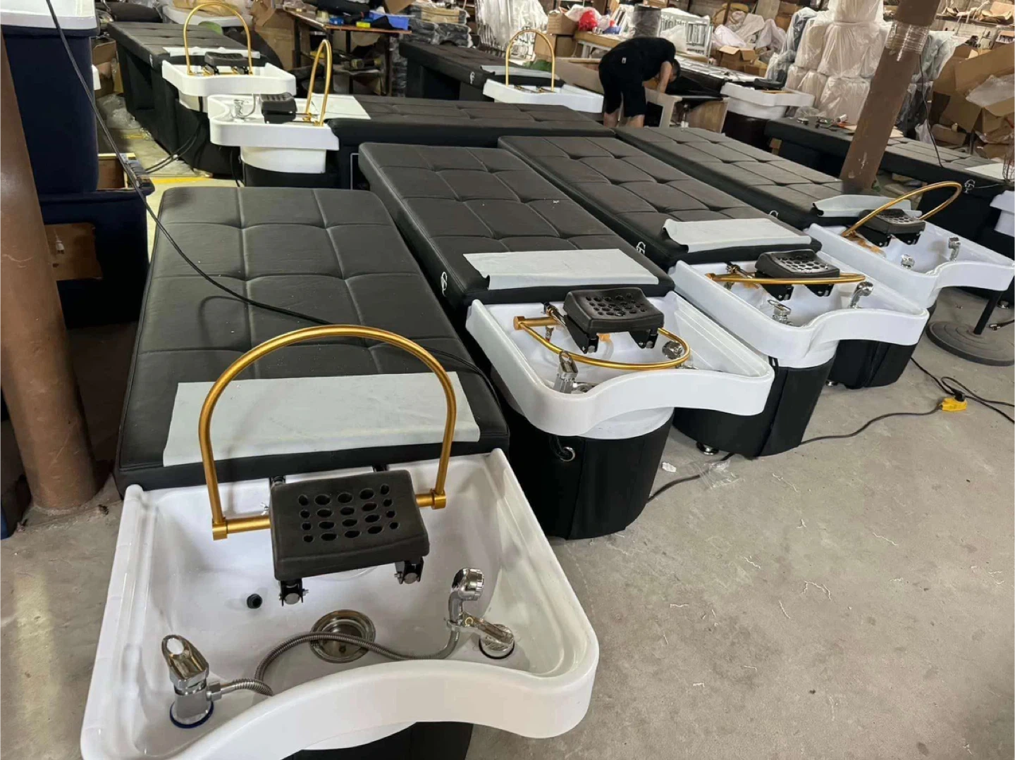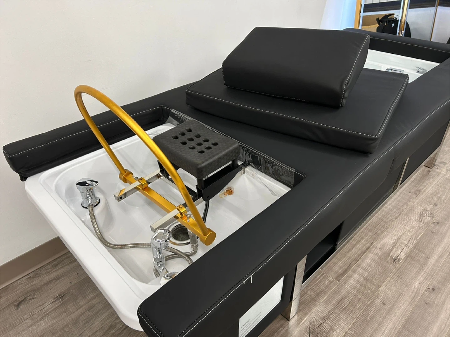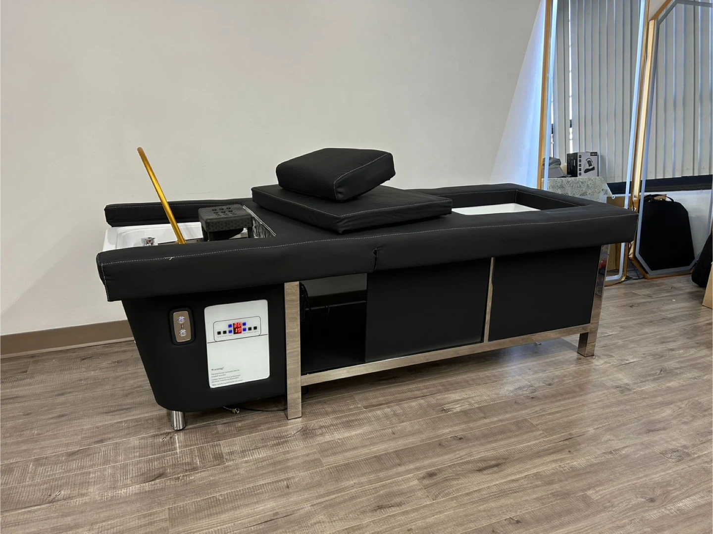 Give your salon or spa a modern upgrade with this luxury shampoo and spa bed! Designed for comfort, durability, and elegance — this all-in-one unit comes with a soft leather bed, built-in ceramic sink, and matching stool. Perfect for salons, spas, or beauty studios that want a professional touch. ✨ Features: ✅ High-quality ceramic basin – durable and easy to clean ✅ Comfortable leather bed – cushioned for full relaxation ✅ Built-in water system compatibility – easy connection for hot & cold water ✅ Matching padded stool included ✅ Sturdy wooden + steel base for long-term use ✅ Modern luxury design – enhances the look of any space 📦 What’s Included: • 1x Shampoo Bed • 1x Ceramic Basin • 1x Padded Stool • Drain & faucet fittings (if required setup available) 🧴 Commonly Used For: • Hair wash & shampoo treatments • Spa & relaxation services • Beauty salon scalp care • Hair coloring & treatment sessions Condition: Brand new Color: Elegant Black with White Basin Material: Premium PU leather + Ceramic Basin + Reinforced frame