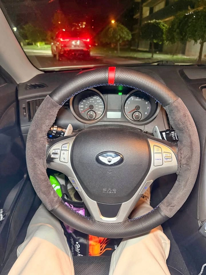 Alcantara steering wheel wrap hand stitching