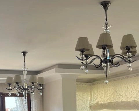 27✨ Luxury TV Wall System – Modern Wood Design + Free Chandeliers! ✨ Upgrade your living room with this modern, elegant wall unit that combines style, functionality, and warmth. ✅ Beautiful wood finish — fits perfectly with any décor ✅ Ample storage for TV, décor, and accessories ✅ Includes FREE chandeliers (European compatible — may require adapter for use in Canada) ✅ Solid, well-made structure ✅ Excellent value for the full set Please note: • The lights haven’t been tested in Canada, but they were tested in Europe and worked perfectly there. • Scratches due to normal use. • No solid backdrop behind the wall cabinet — great for placing an air conditioner or managing cables easily. • The back unit is already disassembled. • The rest of the unit needs to be disassembled for transport — minimum two people required to carry. Size (bottom piece): 341 cm (W) × 50 cm (D) × 38 cm (H) $999 for the entire set! (TV wall system + 2 chandeliers) Decorative items in photos are props and not part of the sale. Pickup only (M4E)