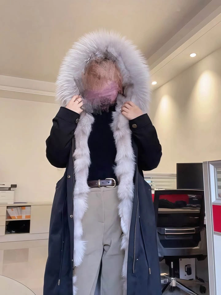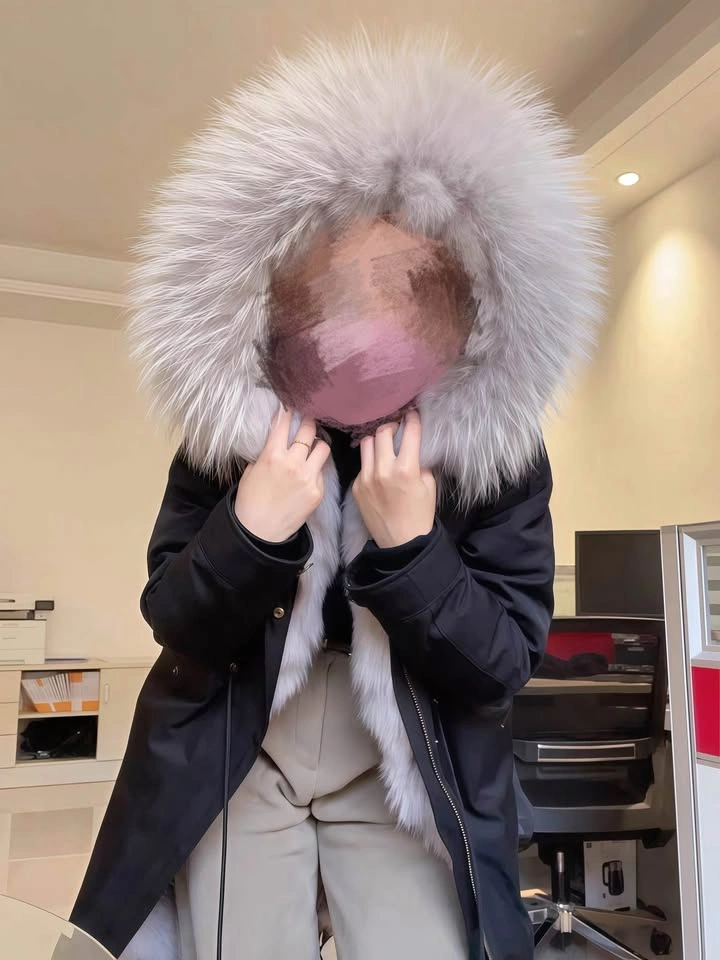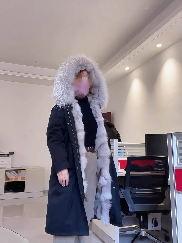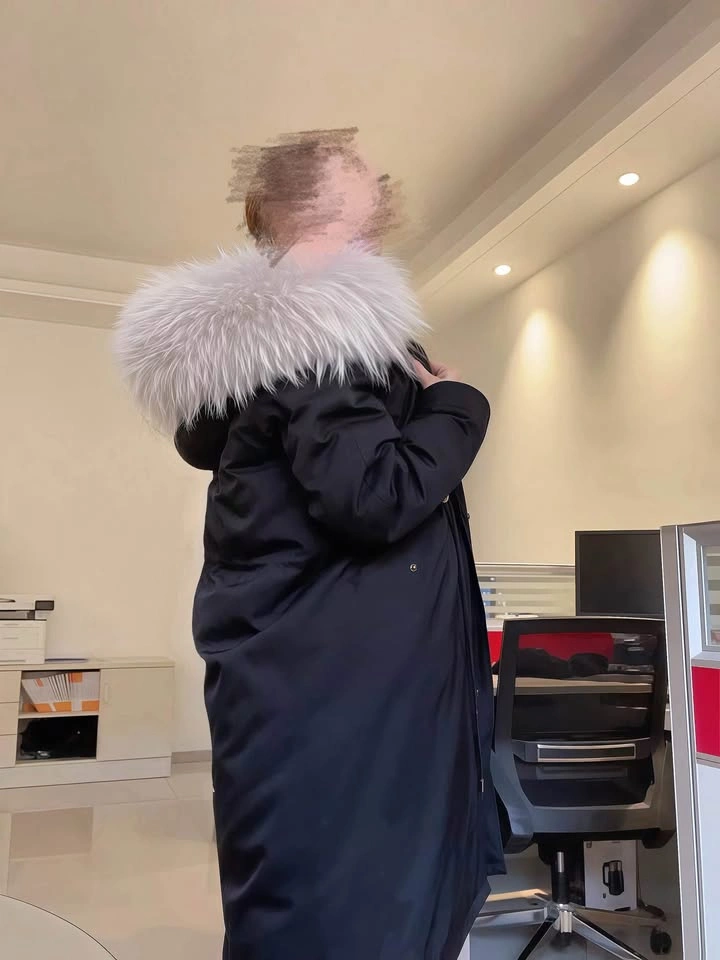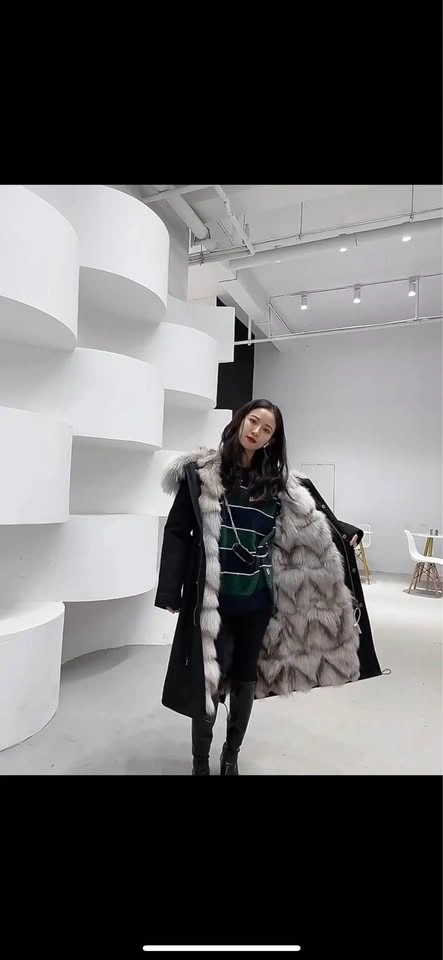US Size: M-L (fits approx. 125–140 lbs) Asia Size: XL (fits approx. 125–140 lbs) Measurements: – Shoulder: 45 cm – Bust: 118 cm – Length: 89 cm (back) / 107 cm (extended back) – Sleeve: 63 cm Brand new, bought from Hong Kong High-quality winter parka with genuine premium fur trim and lining Super warm, soft, and elegant design Color: Black outer shell with light grey detachable inner fur vest and collar