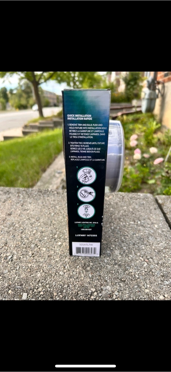 NEW IN BOX I have 3 extra $ 35 all of them Selling a brand new Luxway 4" LED recessed fixture in white finish! It's a compact and flexible 2.5" fixture, equivalent to 60W, and provides 3000K soft white light. The fixture is IC rated for insulated ceilings and has a CRI/IRC of 90 for enhanced natural colour rendition. It's designed for quick and easy installation