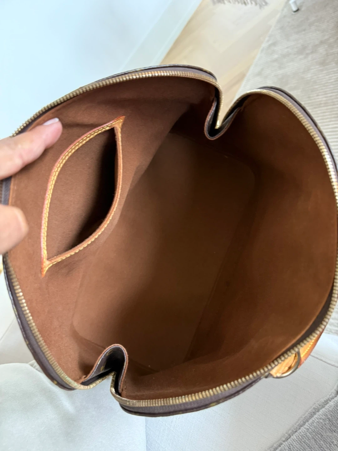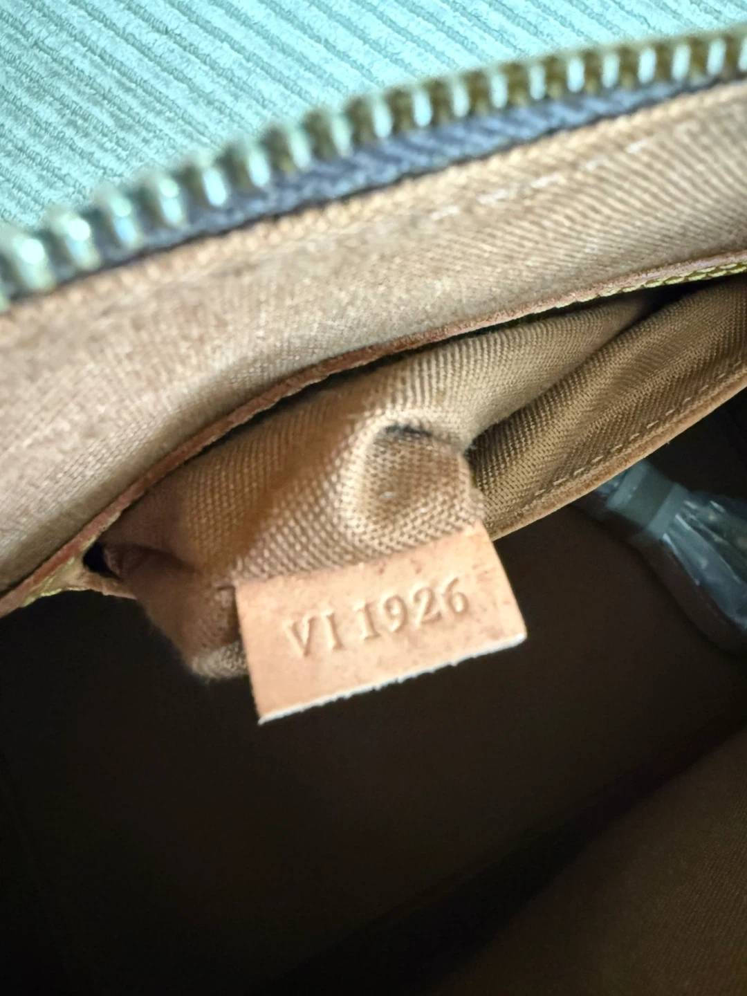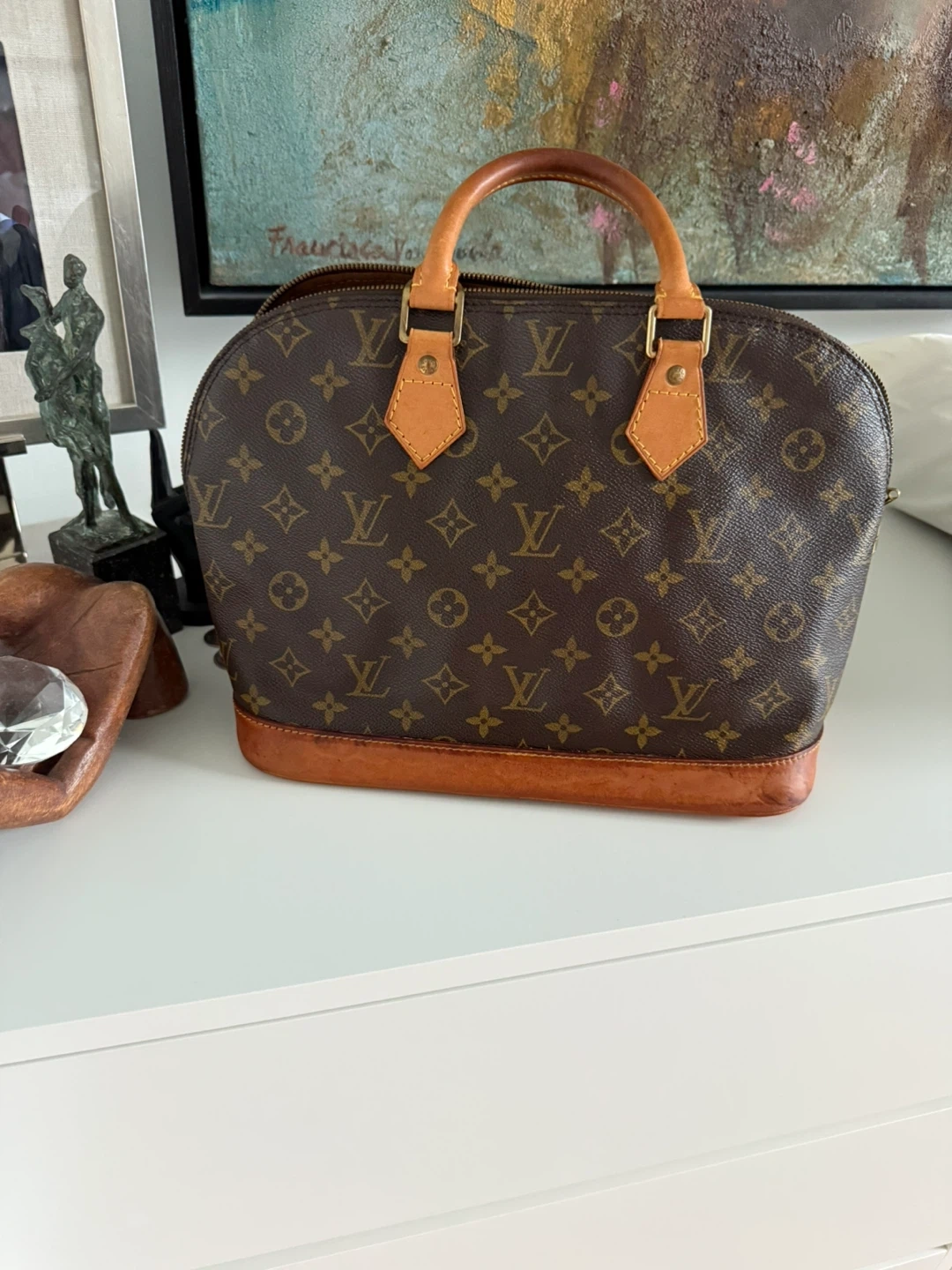 A classic LV Alma PM bag. Bought it years ago and is well loved. I just don’t use it anymore. In great shape, clean and no stains in or on inside lining. See photos. #VI 1926 There are normal vintage wear on the vacchetta leather trim handles and small water marks in base that commensurate with the age of the bag. Original packaging for the long strap that can be made into cross body.