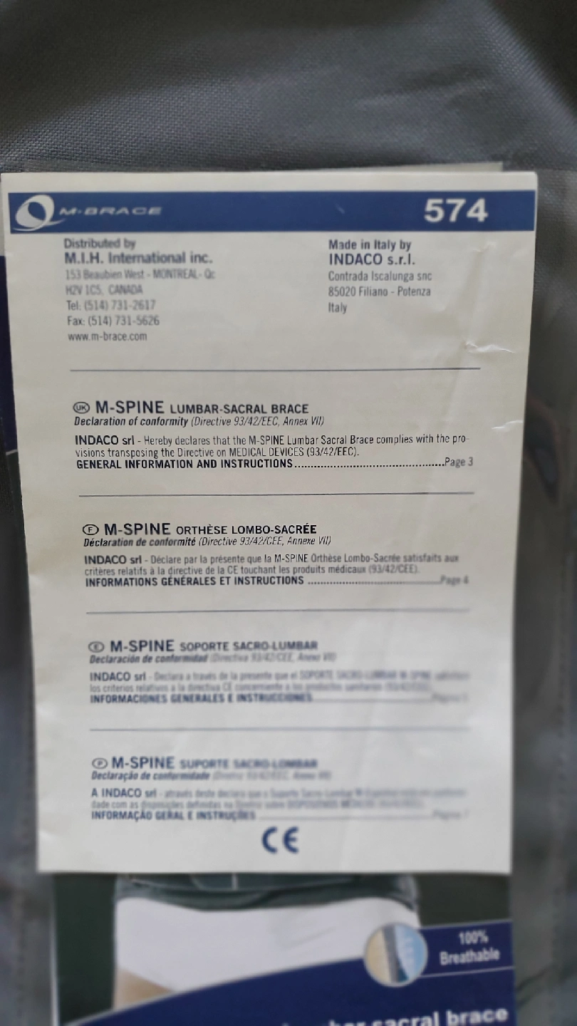 46Selling an M-Brace M-Spine lumbar-sacral brace. It's 100% breathable. Check the size chart in the photos to find your perfect fit! The brace provides support for the lumbar region.