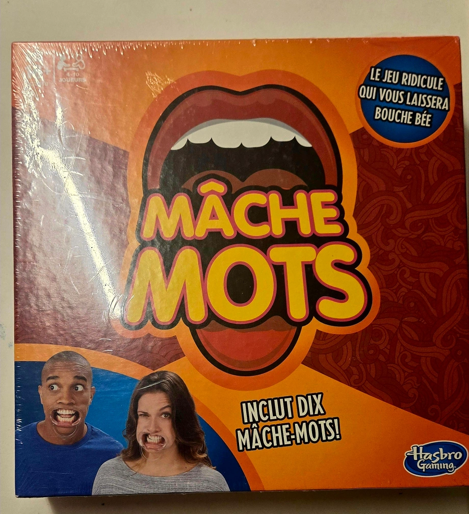 Fun party game. Includes ten mouthpieces. French language version. New and still sealed in original packaging.