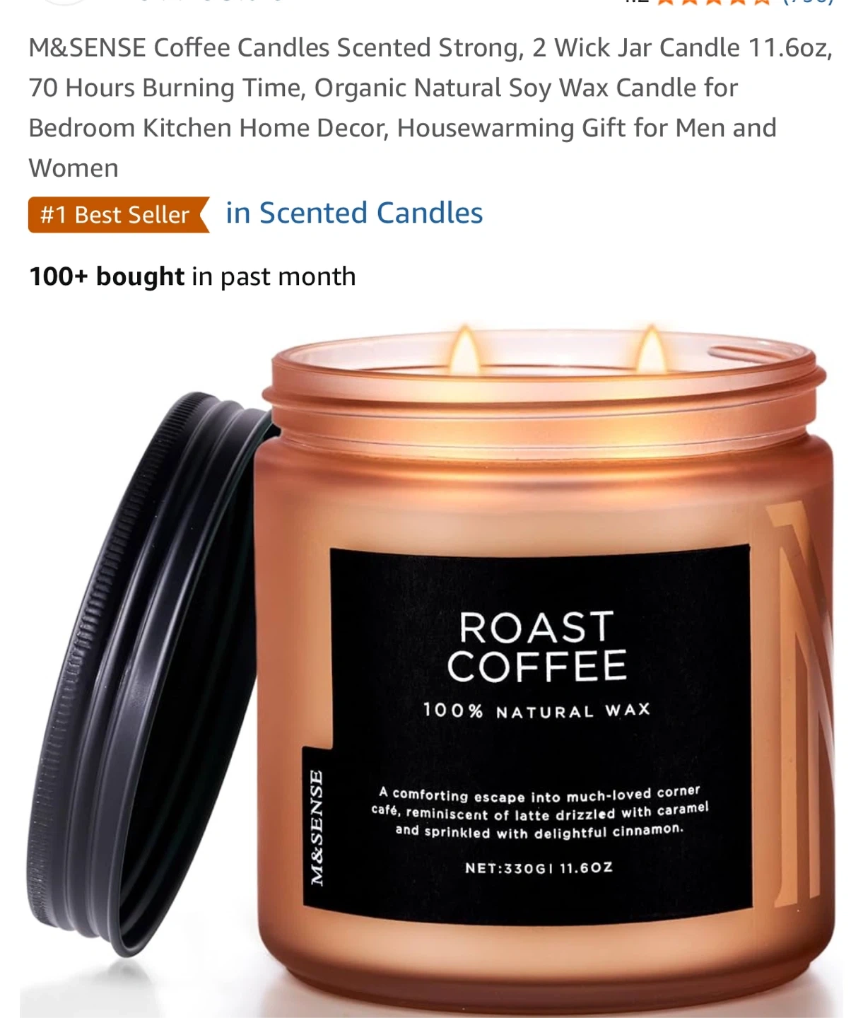 Enjoy the comforting aroma of the M&SENSE Roast Coffee candle! This 11.6oz, 2-wick jar candle offers 70 hours of burn time. Made with organic natural soy wax, it's perfect for adding a cozy touch to any room in your home