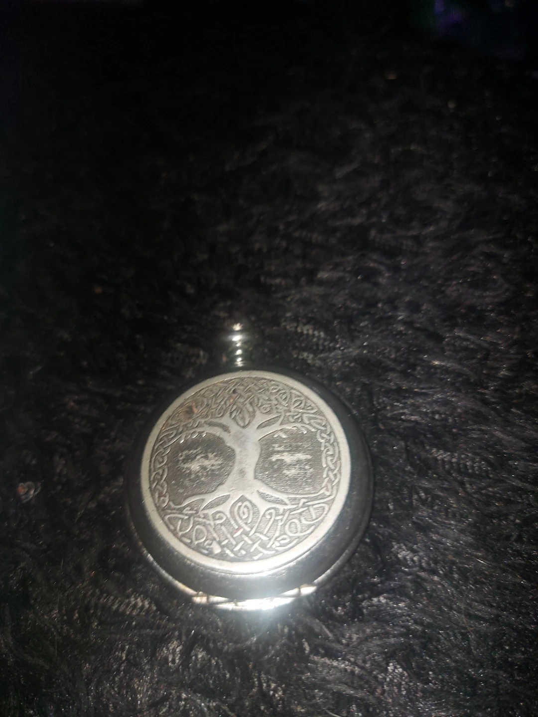This is a pocket watch with a skeleton dial, showing the inner workings. It features a detailed Tree of Life engraving on the case. It's a mechanical watch that would appeal to collectors.