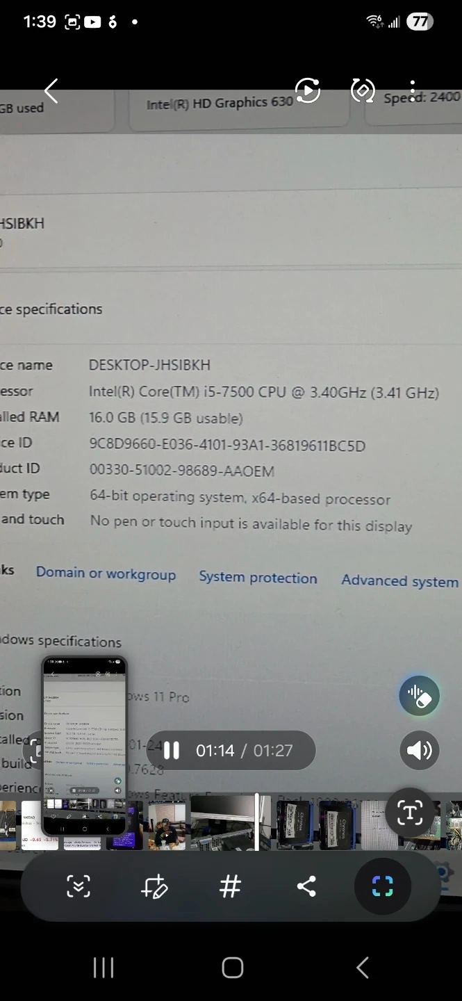It features an Intel(R) Core(TM) i5-7500 CPU @ 3.40GHz (3.41 GHz), 16.0 GB installed RAM, and 240 GB SSD of storage and DVD reader.