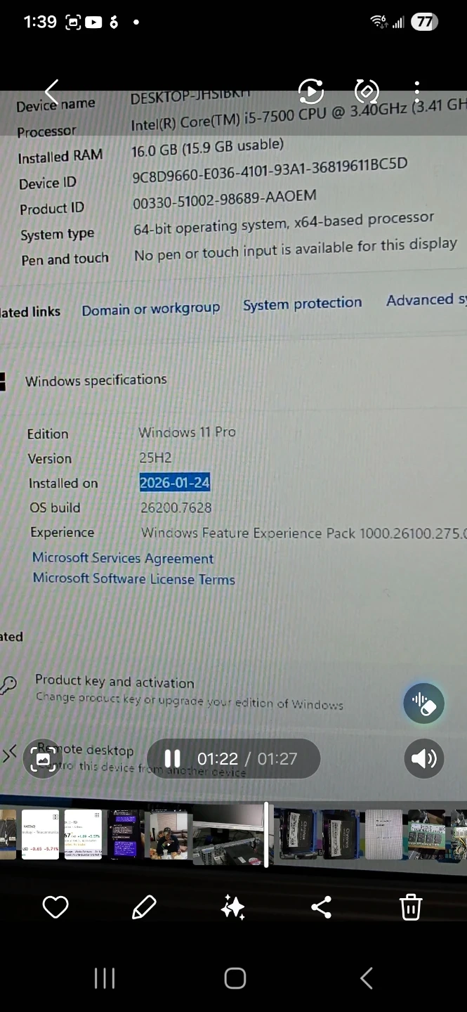 It is currently running Windows 11 Pro, installed on Jan 24th, 2026.