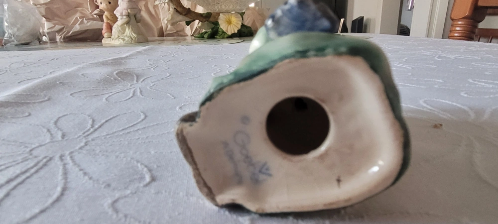 This figurine is in excellent condition and is marked on the bottom. It is in the style of a vintage Goebel Hummel figurine.