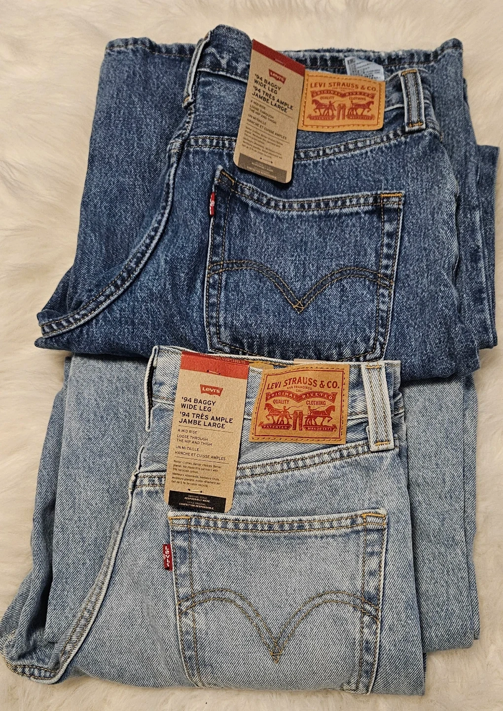 Two pairs of Levi's '94 Baggy Wide Leg jeans. One pair is size 29x31 Medium Wash (SOLD) and the other is size 27x31 Light Wash