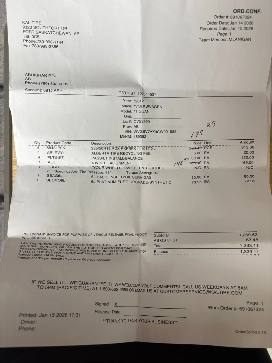 Selling my 2012 Tiguan in great condition. The vehicle has been fully serviced and well maintained, with several new parts recently installed, so it’s ready for the road with no immediate work needed.