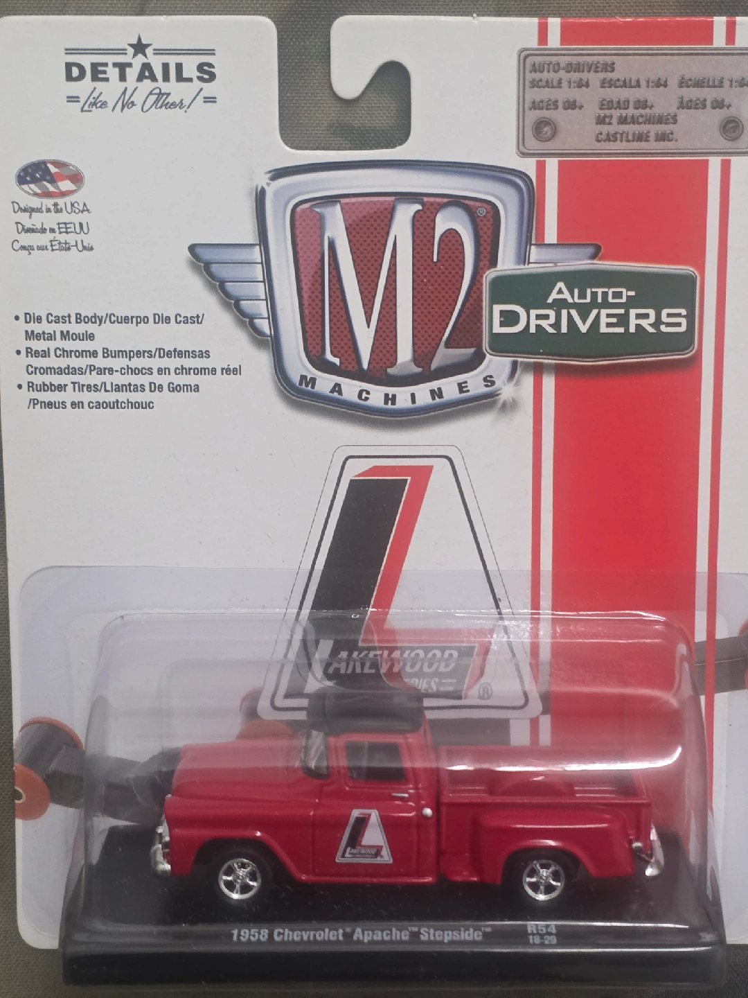 Selling an M2 Machines Auto-Drivers 1958 Chevrolet Apache Stepside diecast truck! It's in its original packaging and is a 1:64 scale model. A great addition to any collection!