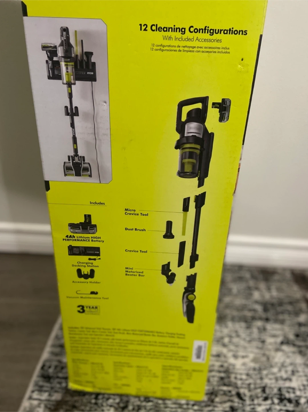 This Ryobi ONE+ HP stick vacuum kit comes with a 4.0Ah Lithium High Performance battery and a charging dock. It features strong suction and a HEPA filter. It's great for pet hair pickup and has 12 cleaning configurations with included accessories.