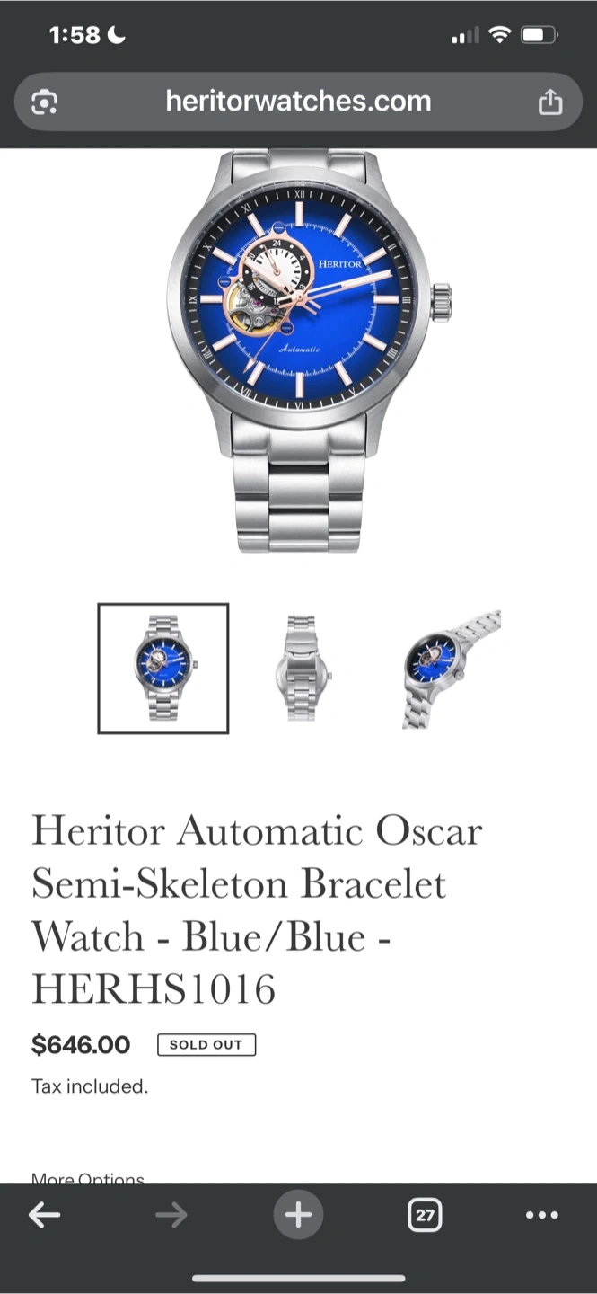 Selling a Heritor Automatic Oscar Semi-Skeleton Bracelet Watch in blue. It comes in the original box. This watch is a stylish accessory that is sure to catch attention! We can negotiate