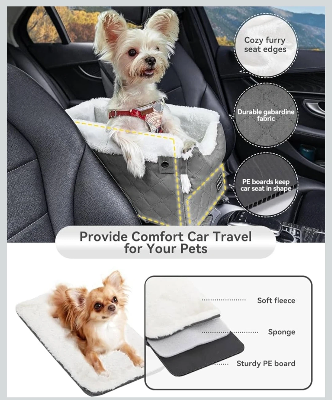 Center Console Dog Car Seat with Safe Protection Hooks,..