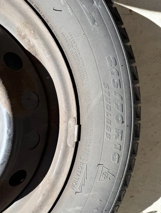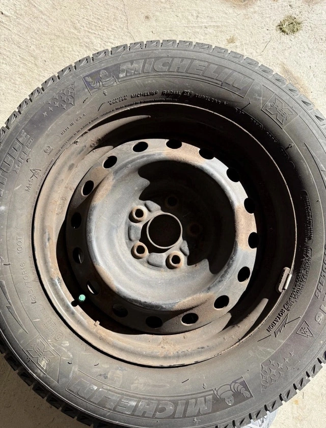 These are four Michelin X-Ice Snow tires, size 215/70R16, mounted on steel rims. These tires have seen some winters, so they're not exactly new, but they still have life in them as there is low wear and tear and there is about 60% tread remaining. If the ad's still up, the tires are still available – no need to ask! Price is negotiable.