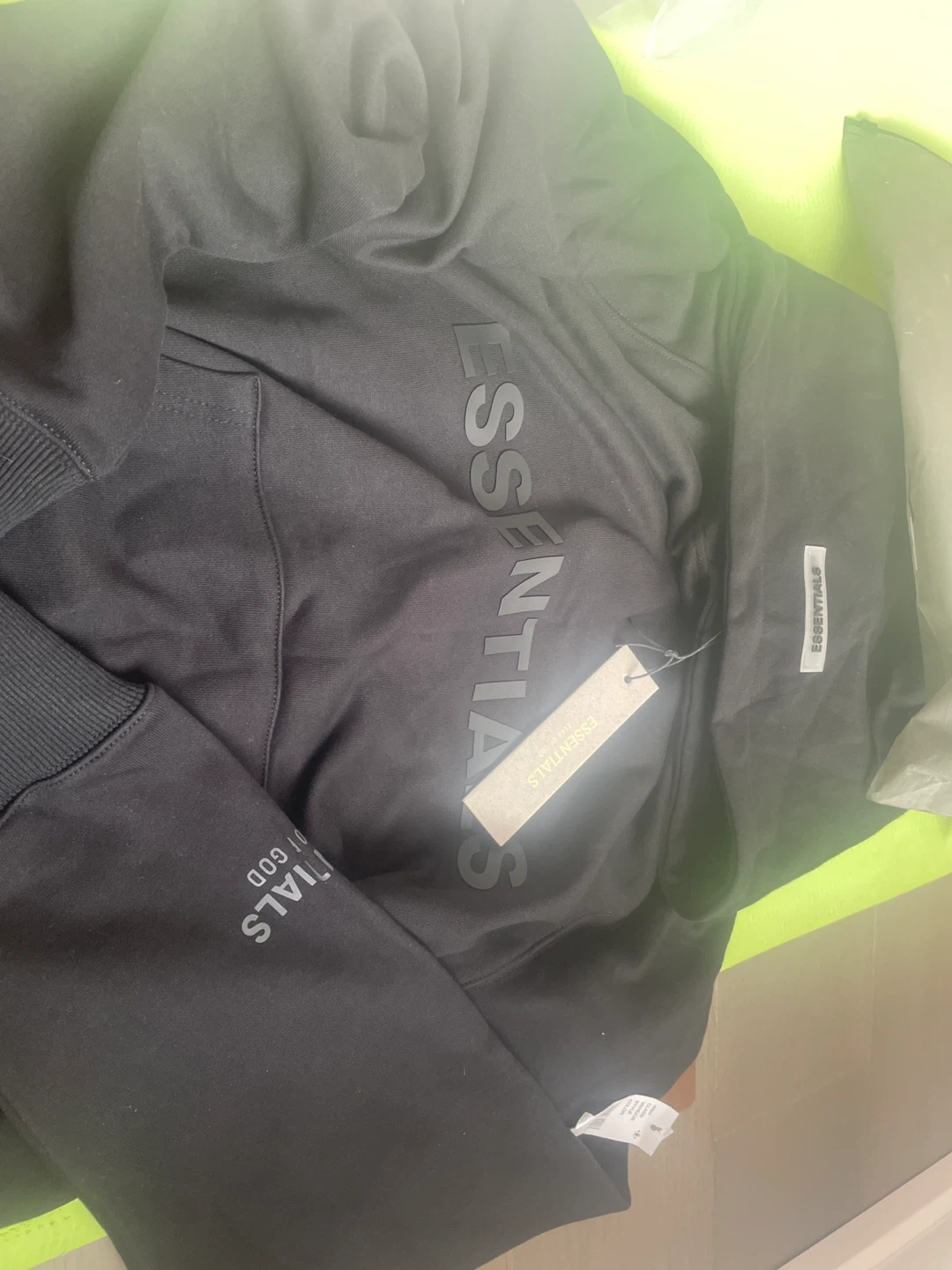 Selling an Essentials Fear of God hoodie in size small. It's in great condition and ready for a new owner! The hoodie is black and made in Vietnam.