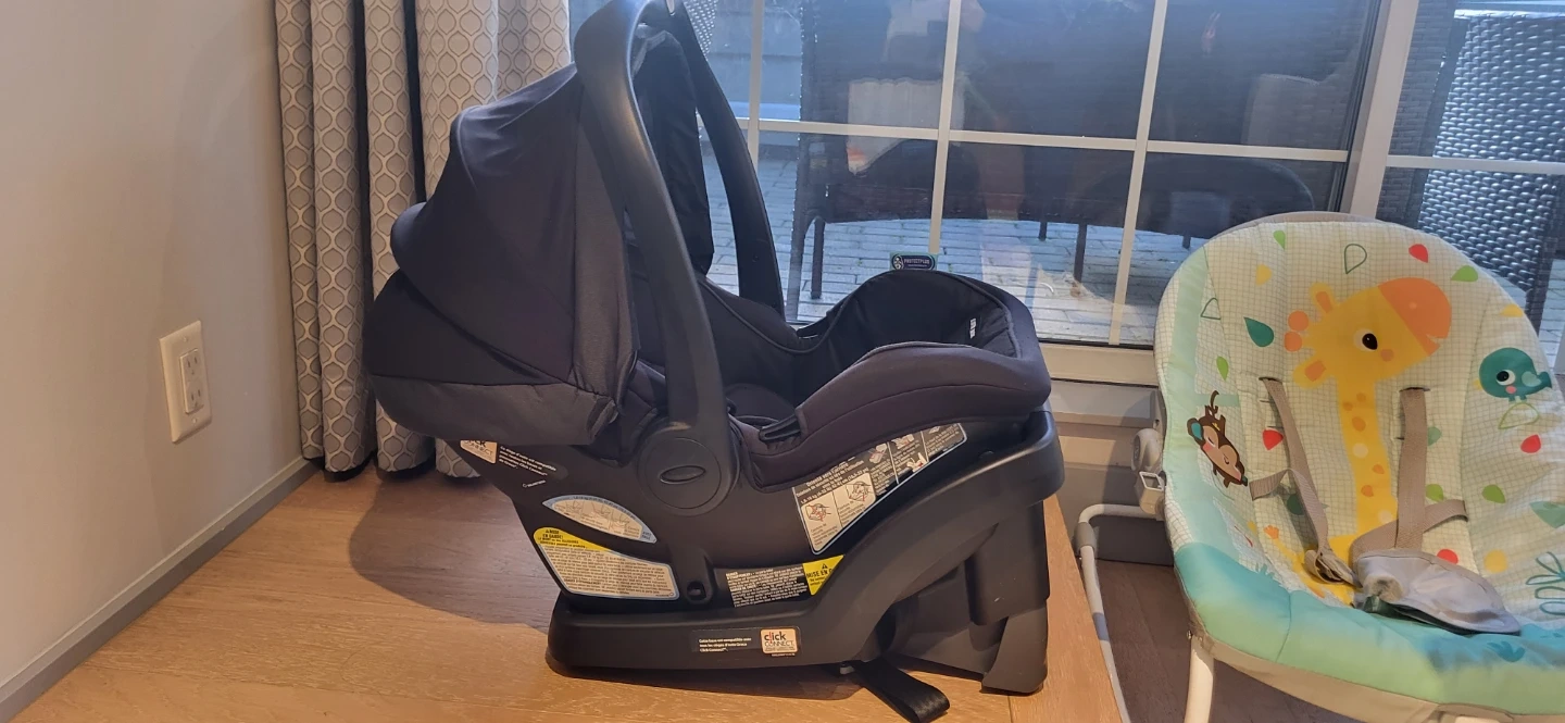 Graco SnugRide SnugLock 35 infant car seat with base. Black colour. It's designed for easy installation and safety for your little one.