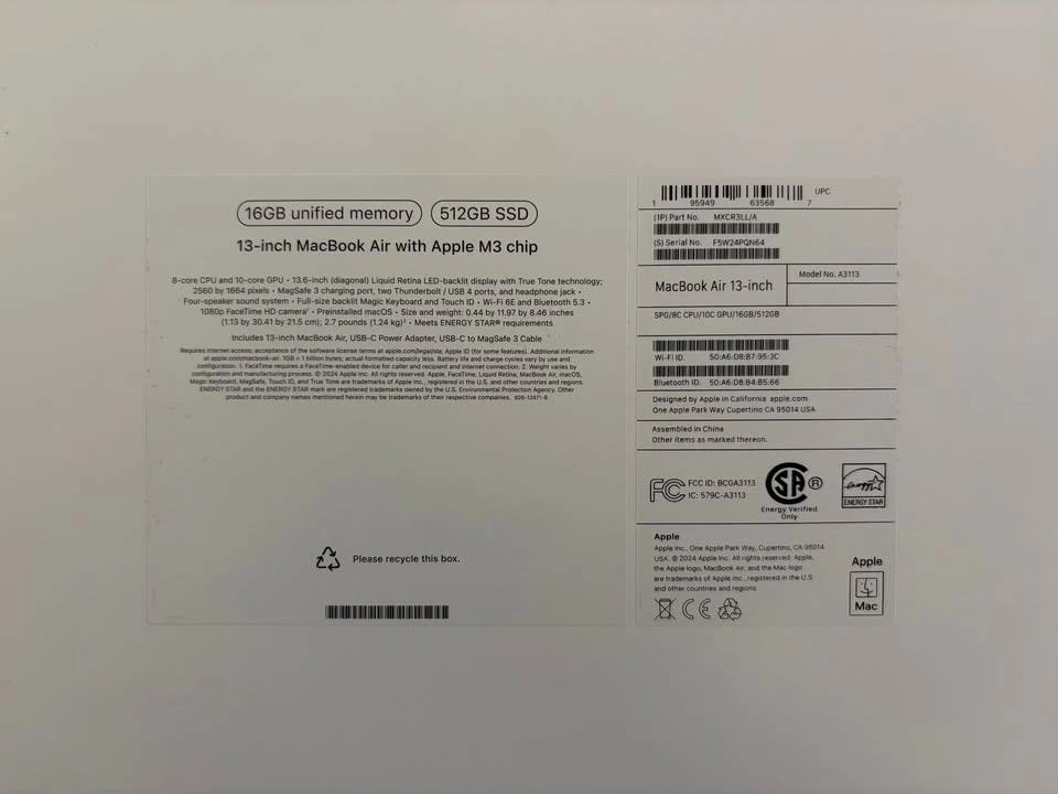 15Original owner. Flawless condition. Factory reset with no iCloud lock. – 512 GB SSD – 16 GB RAM – Space Grey – 13-inch (w/ matte screen protector) – 93% battery health Includes: Free sleeve, original box, 35W dual USB-C charger and MagSafe charging cable. Pickup only.
