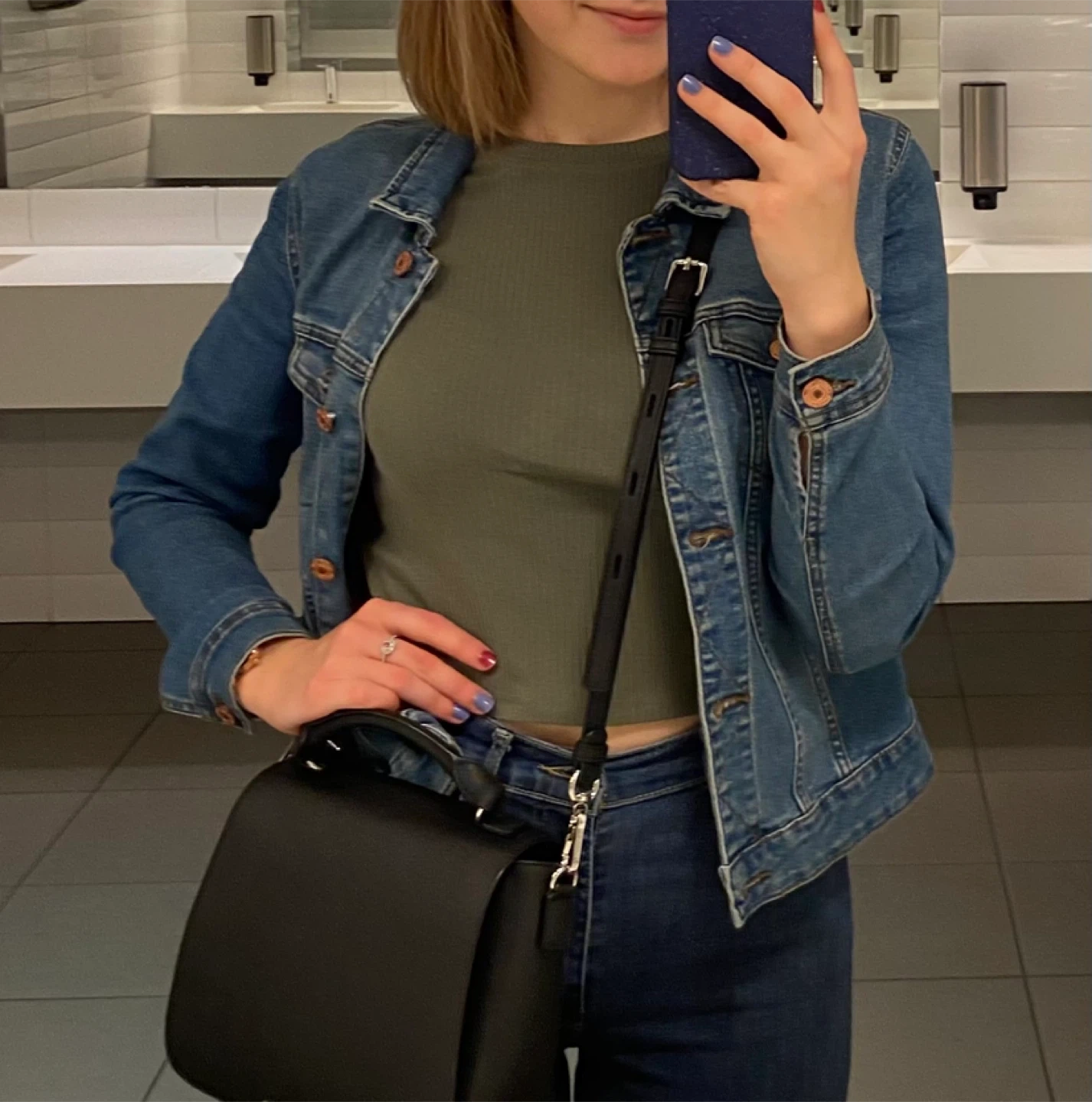 This jacket was so, so loved. Unfortunately, I haven’t worn it in years so I’m selling. It says size large but it’s more medium imo. A little bit of a washed denim look. I always got compliments when I wore it. 🥹