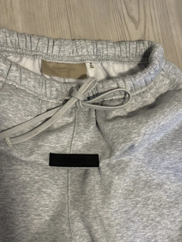 This is a Fear of God Essentials hoodie and sweatpants set. Both pieces are grey and newl. Made of cotton blend material. Message me for information