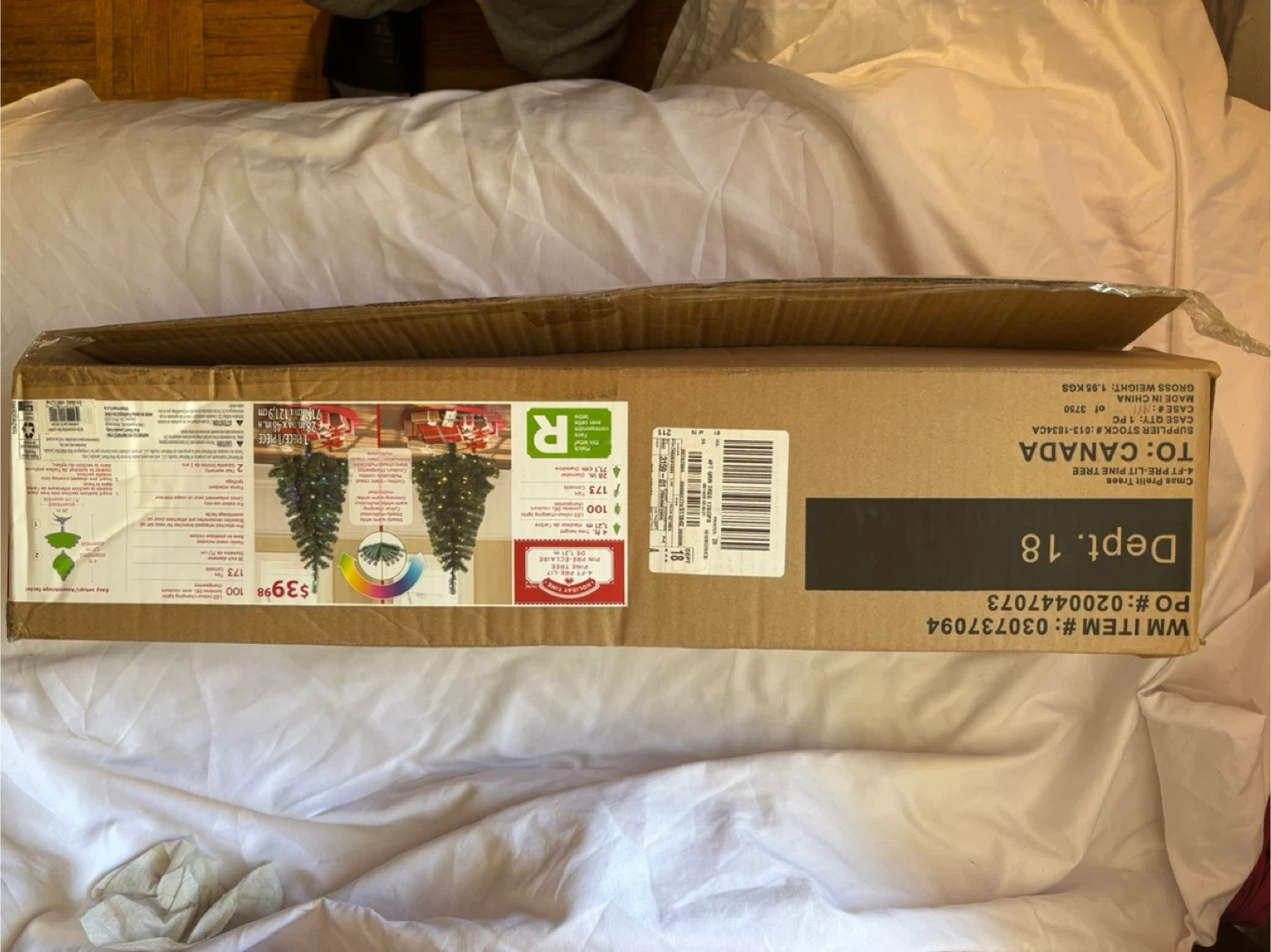 This is a 4-foot pre-lit artificial pine tree. It comes with 100 LED colour-changing lights and 173 tips. The diameter is 28 inches.