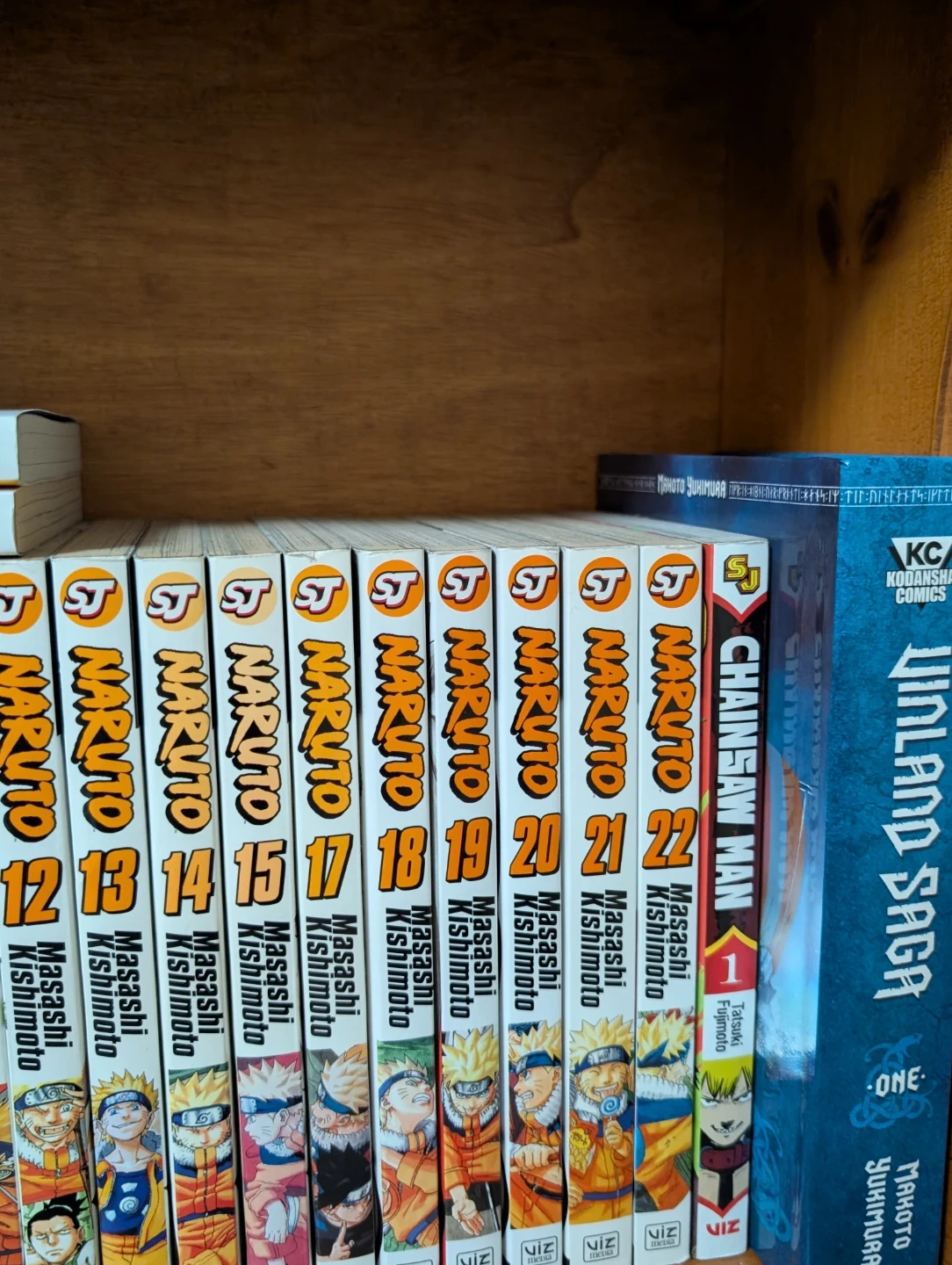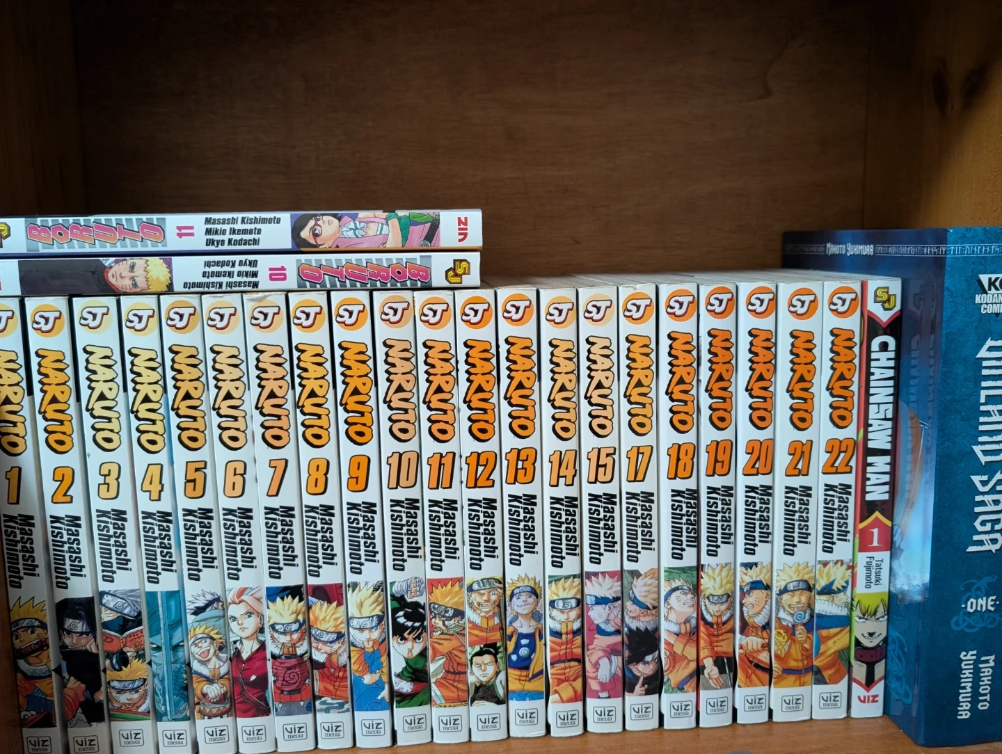 I have a small collection of manga here including Naruto, Boruto, chainsaw man and vinalnd saga.