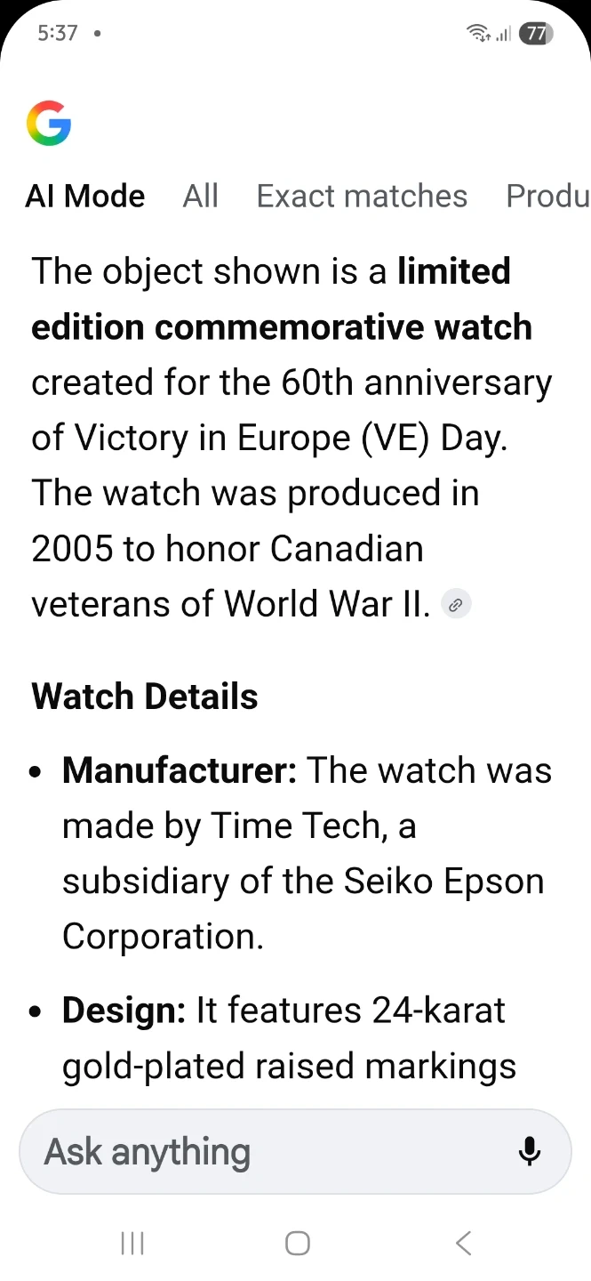 VE 1945-2005 Commemorative Watch