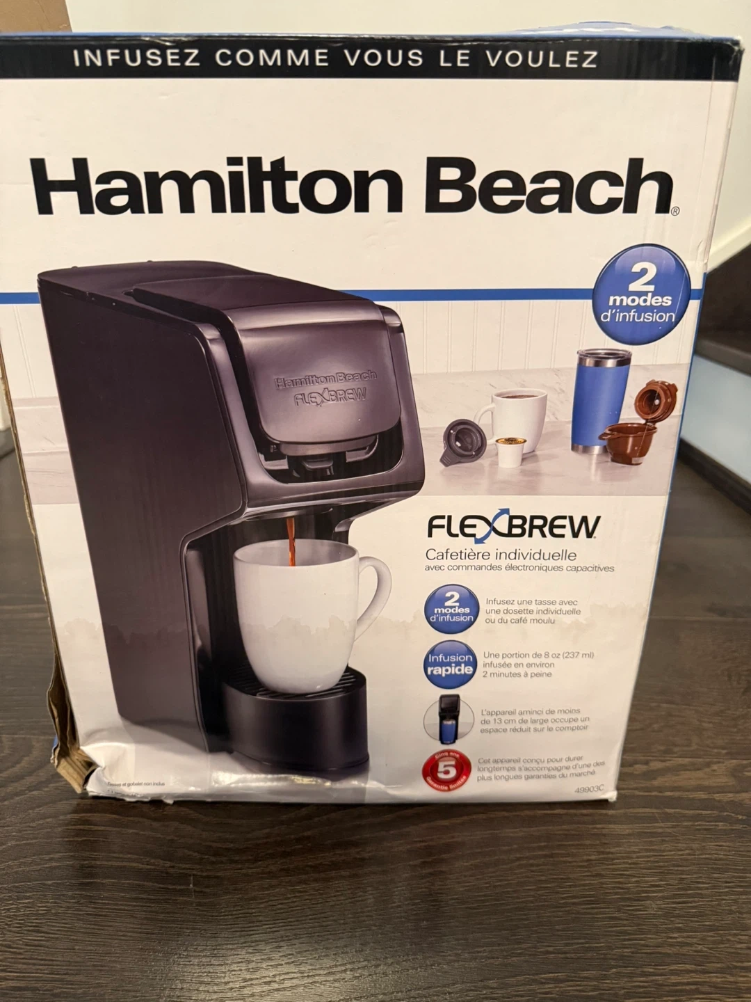 Selling a Hamilton Beach FlexBrew single-serve coffee maker! It's in great shape and ready to make your mornings easier. It has 2 modes d'infusion and infusion rapide. Get your caffeine fix with this convenient machine either with powered coffee or capsules!
