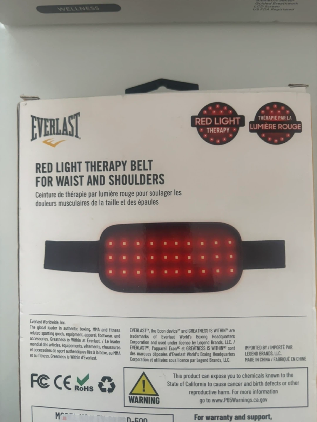 This Everlast red light therapy belt is designed for waist and shoulders. It offers red light therapy, great for muscular pain relief. It's made in China.