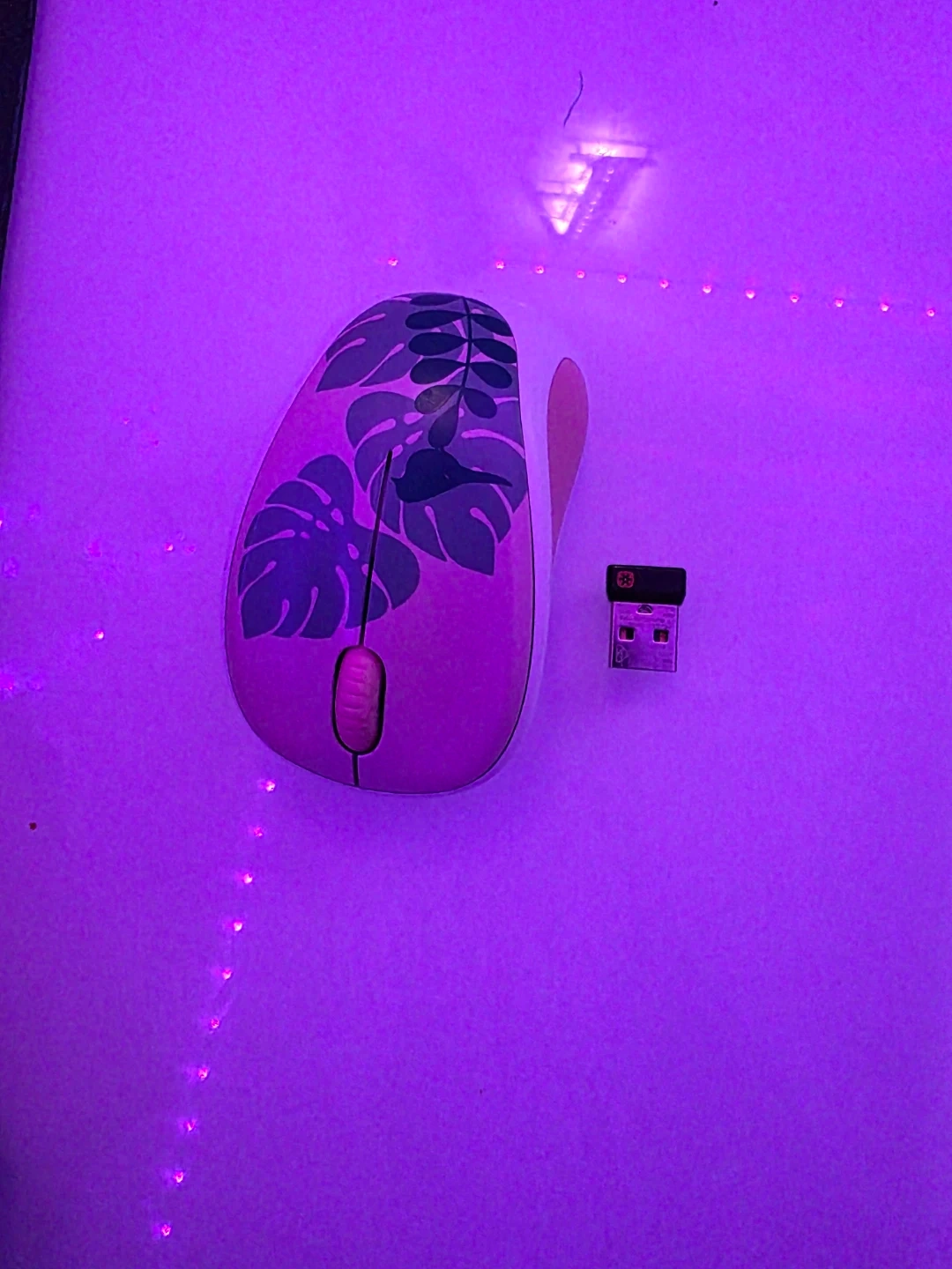Selling a Logitech Mouse in a cute floral design! It comes with its receiver, so it's ready to connect to your laptop. It's in great condition, just selling because I don't like the color.