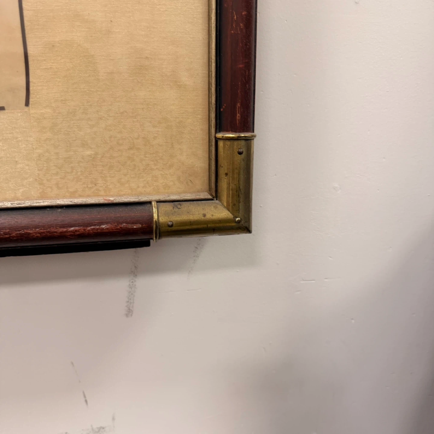 Good vintage condition. Some minor aging and small marks on the silk background consistent with age. Frame and mounting are solid.