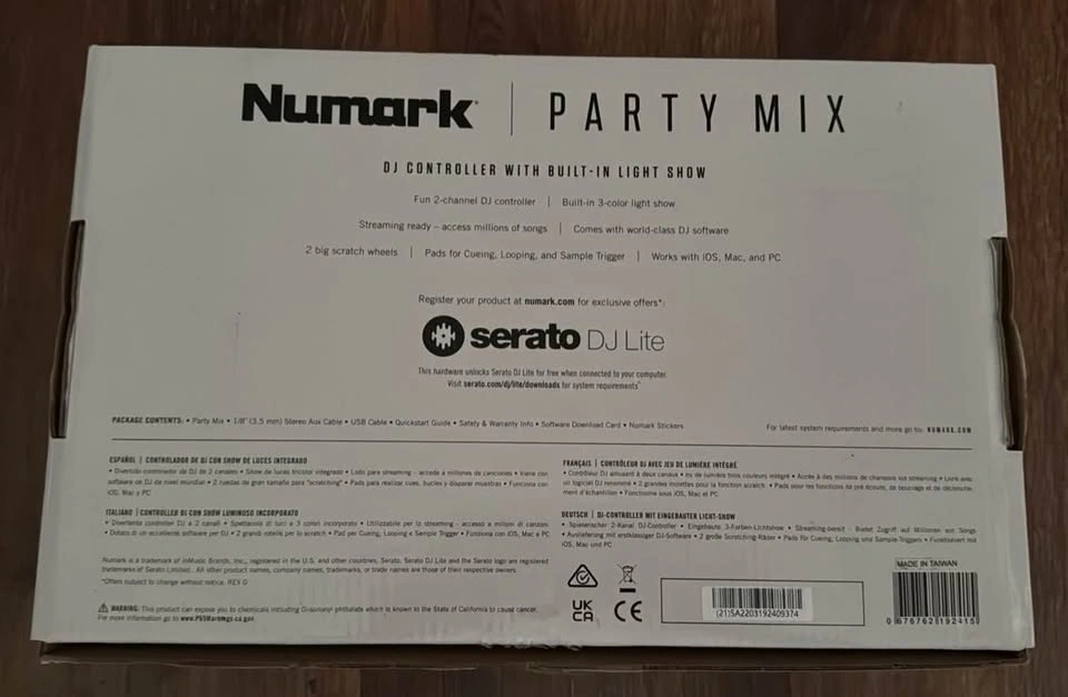 Awesome Numark Party Mix DJ controller with built-in light show. Compatible with Serato. Comes with original box and cables. Excellent condition, barely used.