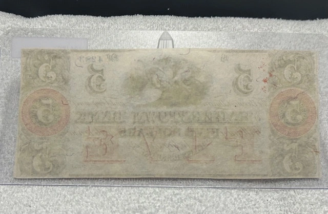 This is a used Hagerstown Bank five dollar note. This vintage bank note is a piece of history. It's a tangible link to a bygone era, perfect for collectors and history buffs alike. Despite its age, there is little wear and tear to the note, as can be seen in the image above; it’s very crisp and in great shape. Cash accepted. Cashless payment accepted.