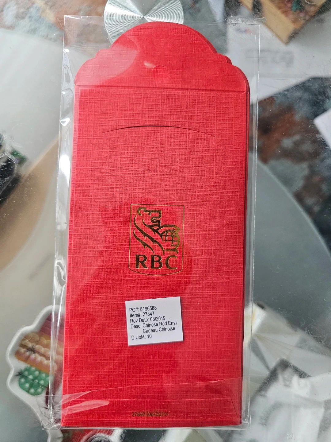 Brand new red envelopes from Royal Bank of Canada. These are perfect for Lunar New Year and other celebrations. Features gold embossed Chinese characters and the RBC logo.