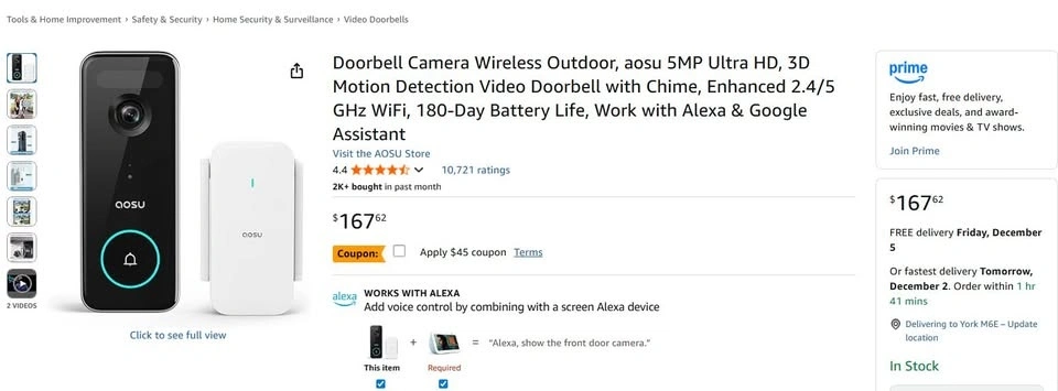 Doorbell Camera Wireless Outdoor, aosu 5MP Ultra HD, 3D Motion Detection Video Doorbell with Chime, Enhanced 2.4/5 GHz WiFi, 180-Day Battery Life, Work with Alexa & Google Assistant